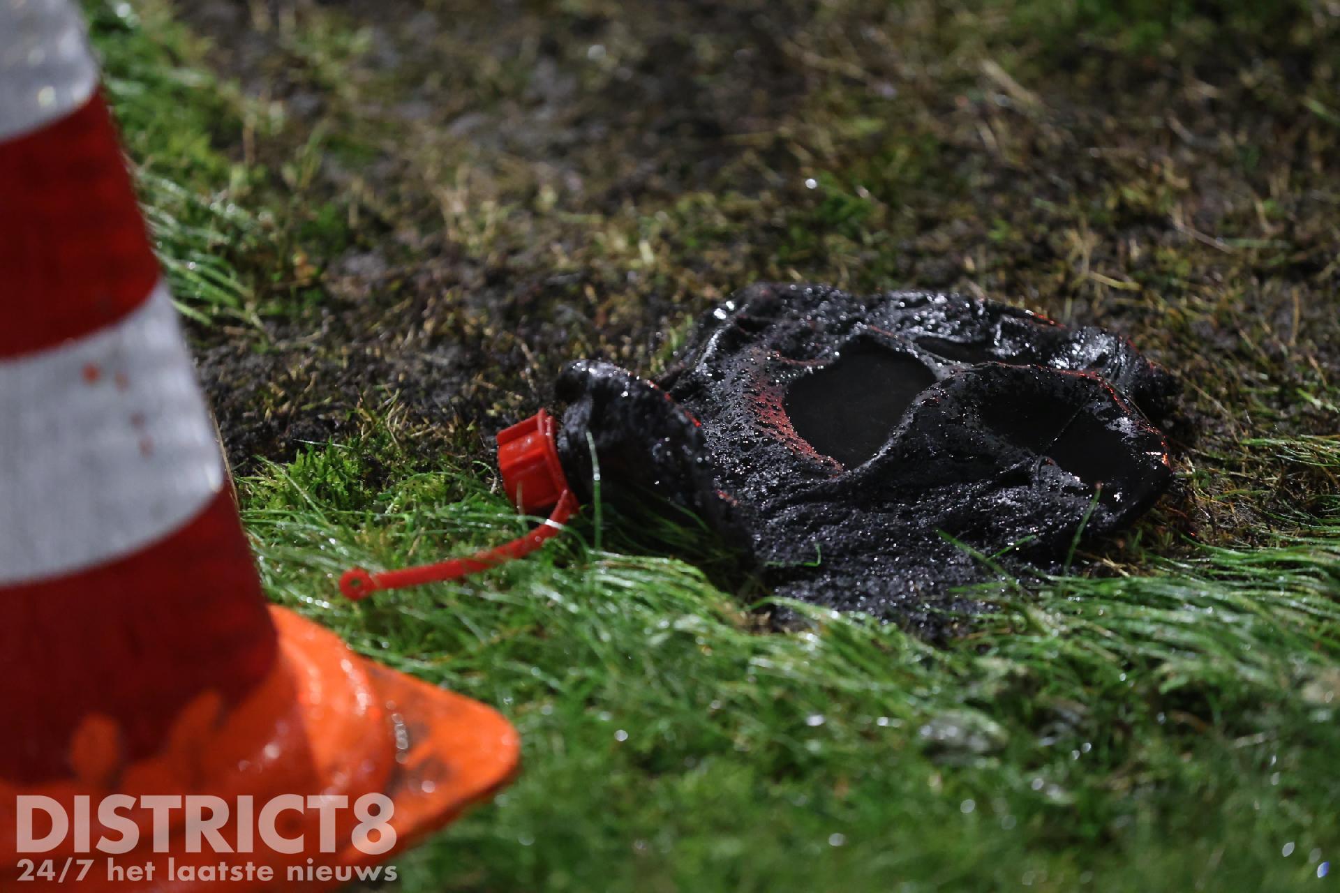De explosie heeft flinke schade aangericht aan de toegangsdeur van de garage, in het gras tegenover de garage ligt een gesmolten fles. Vermoedelijk is daarmee de explosie veroorzaakt. Volgens getuigen zouden de verdachten er met een auto vandoor gegaan zijn na de explosie.