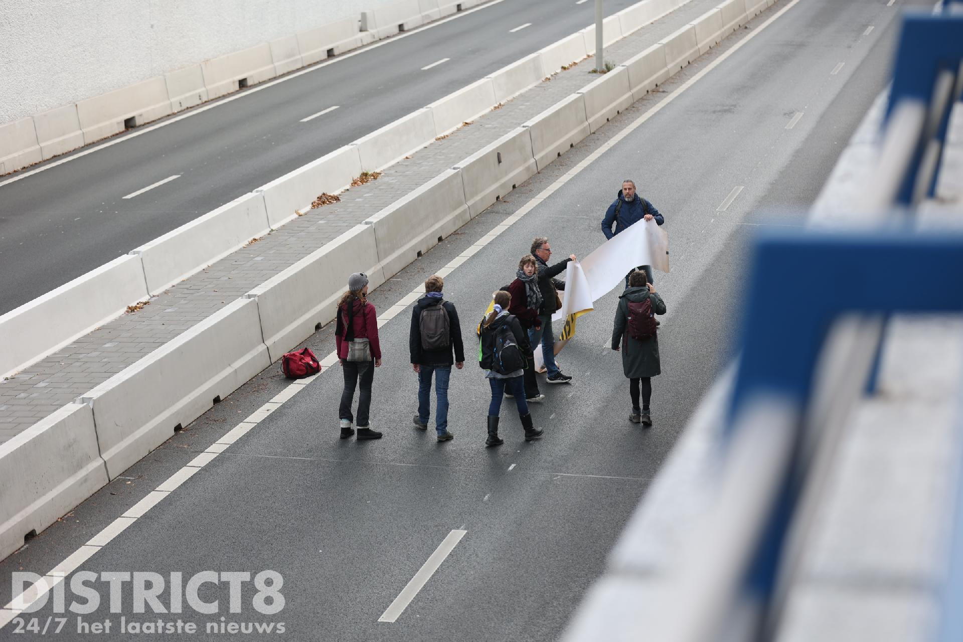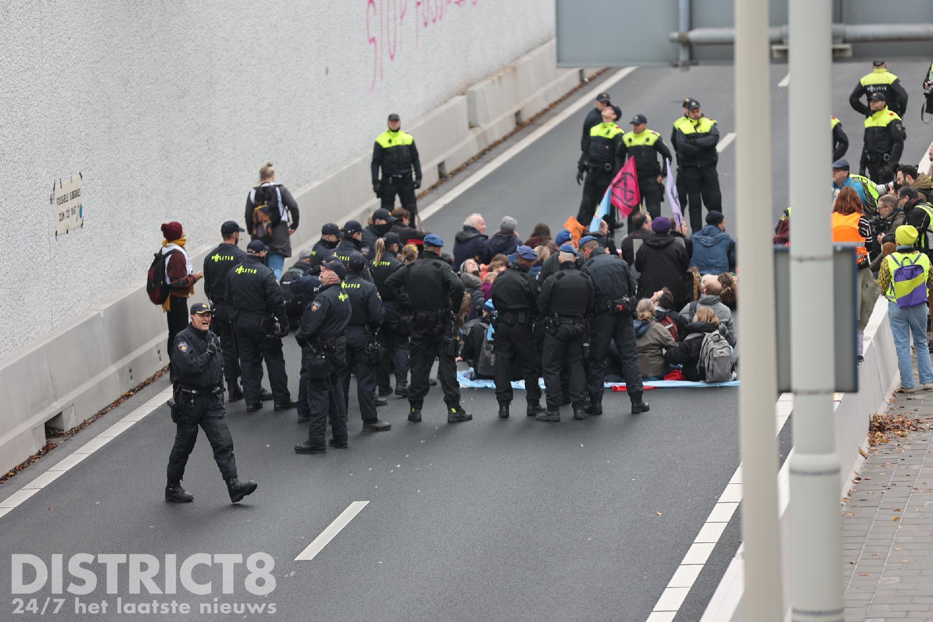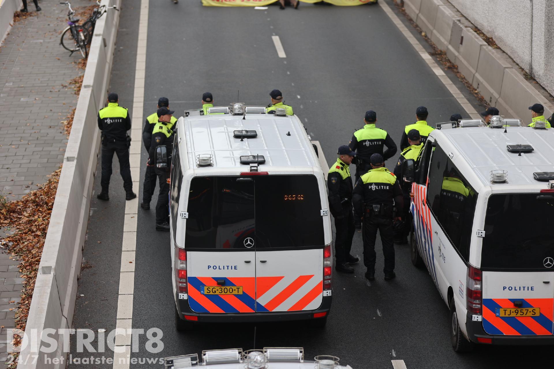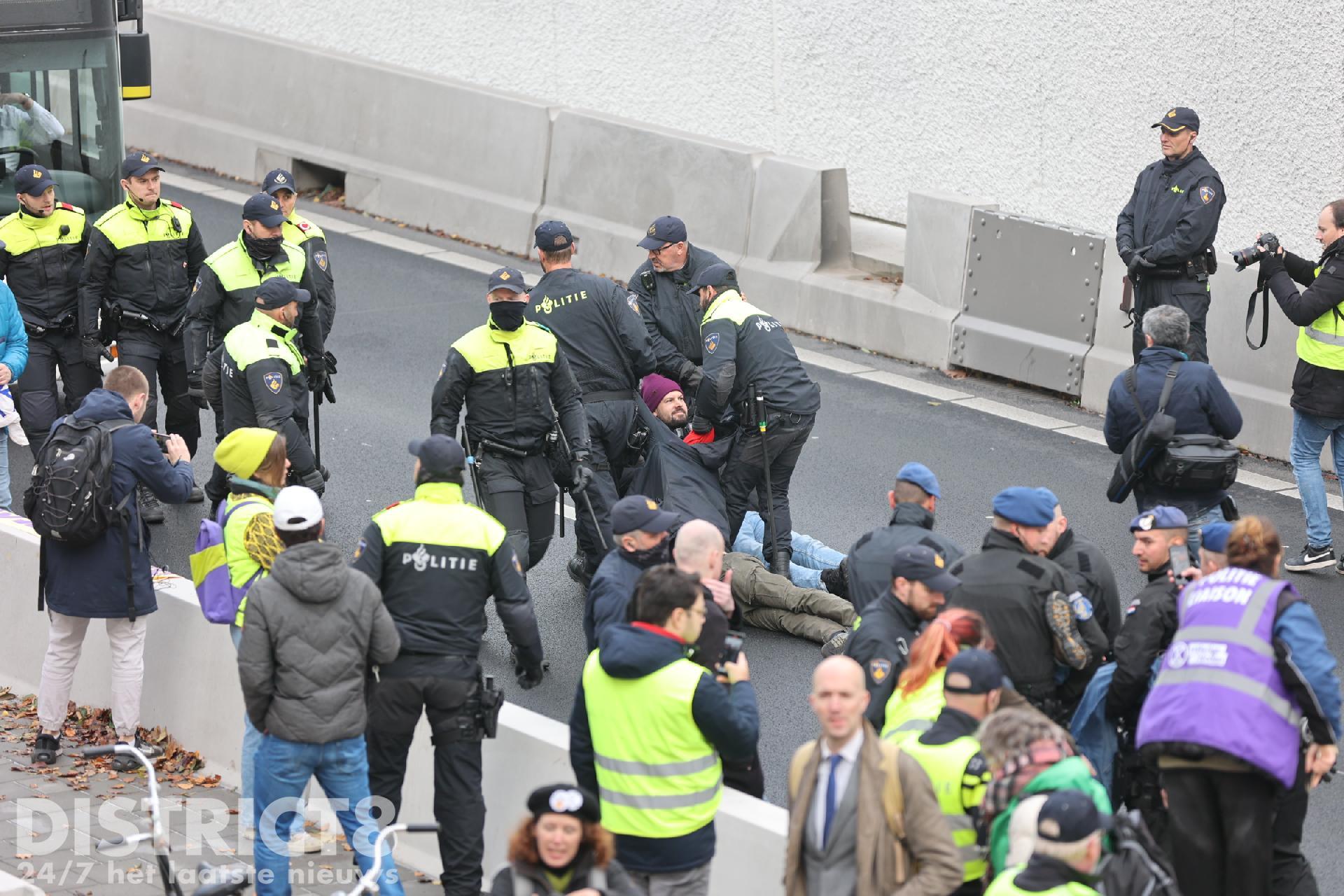 Actievoerders zijn met spandoeken de rijbaan op gegaan, inmiddels is de A12 stad in- en uit afgesloten door de politie. De politie is ter plaatse en maakt een plan van aanpak om de actievoerders te verwijderen.