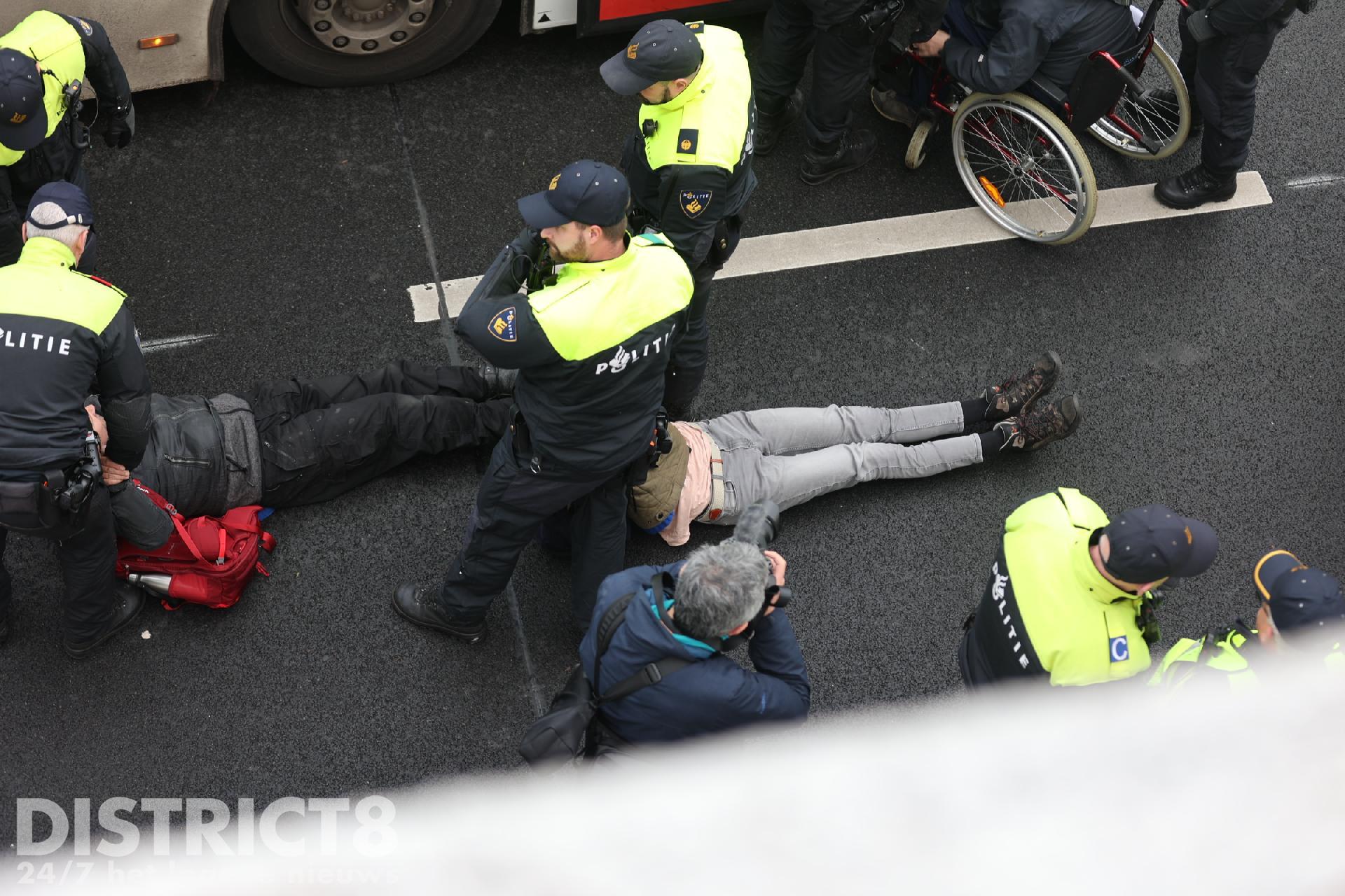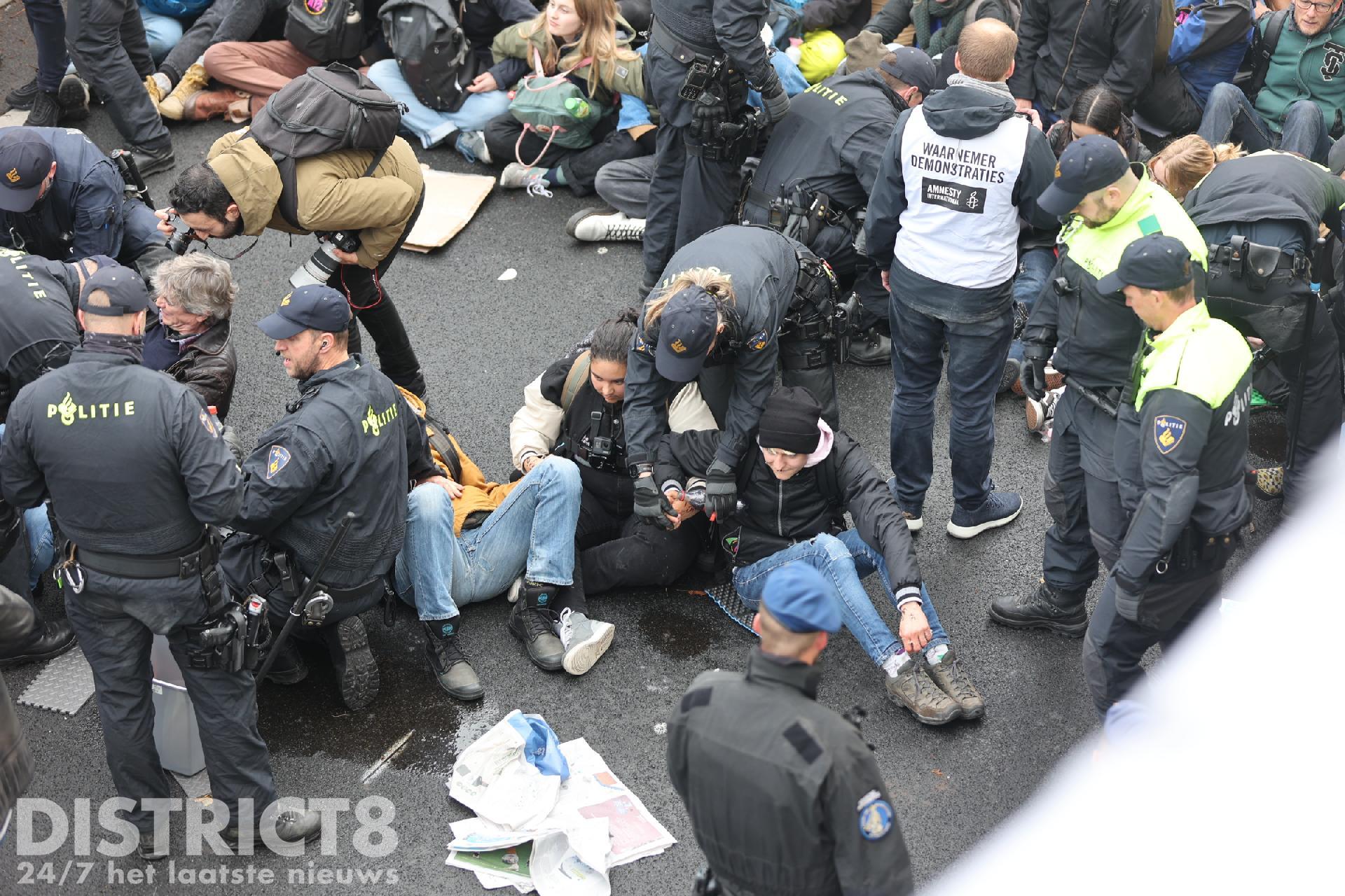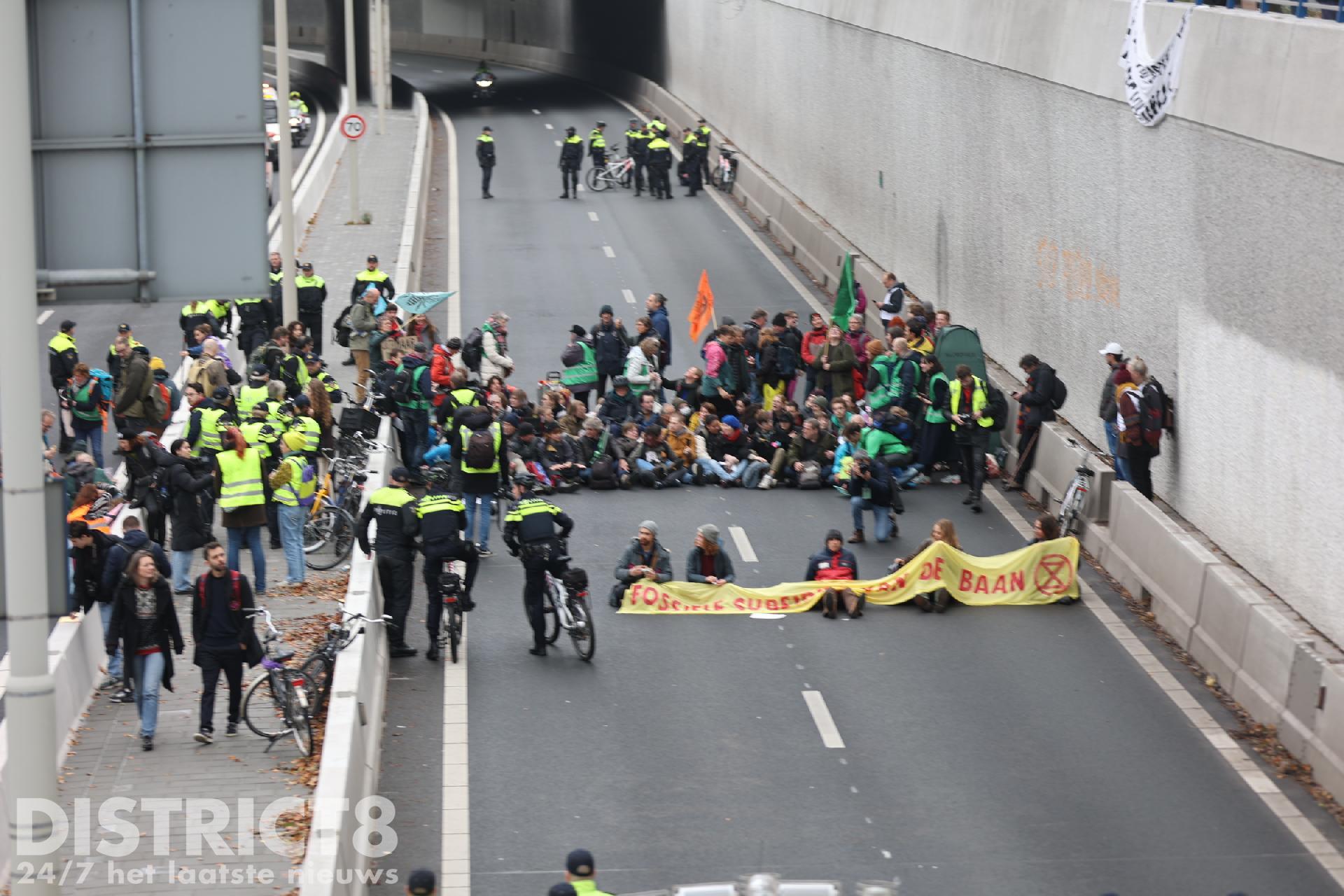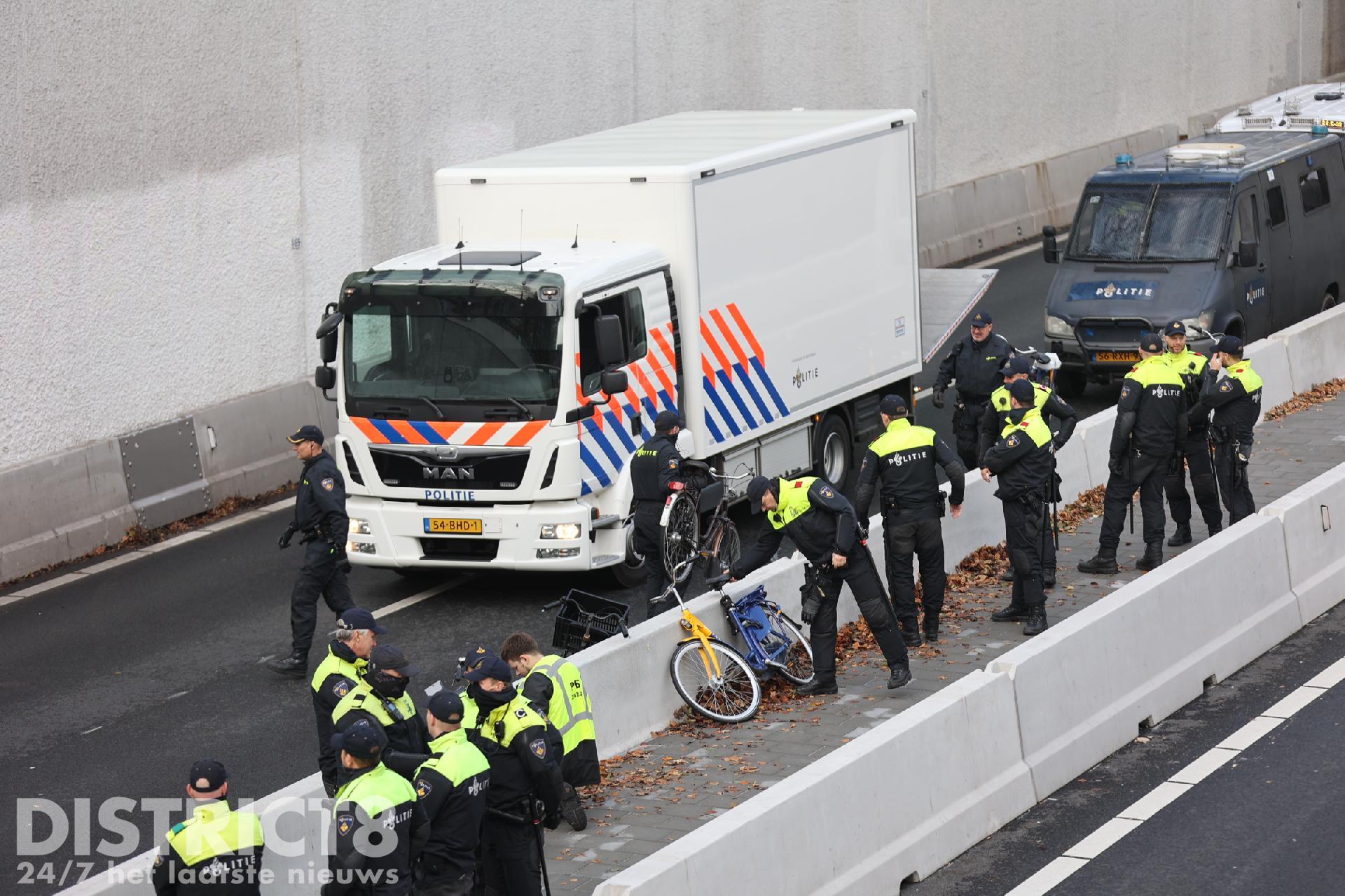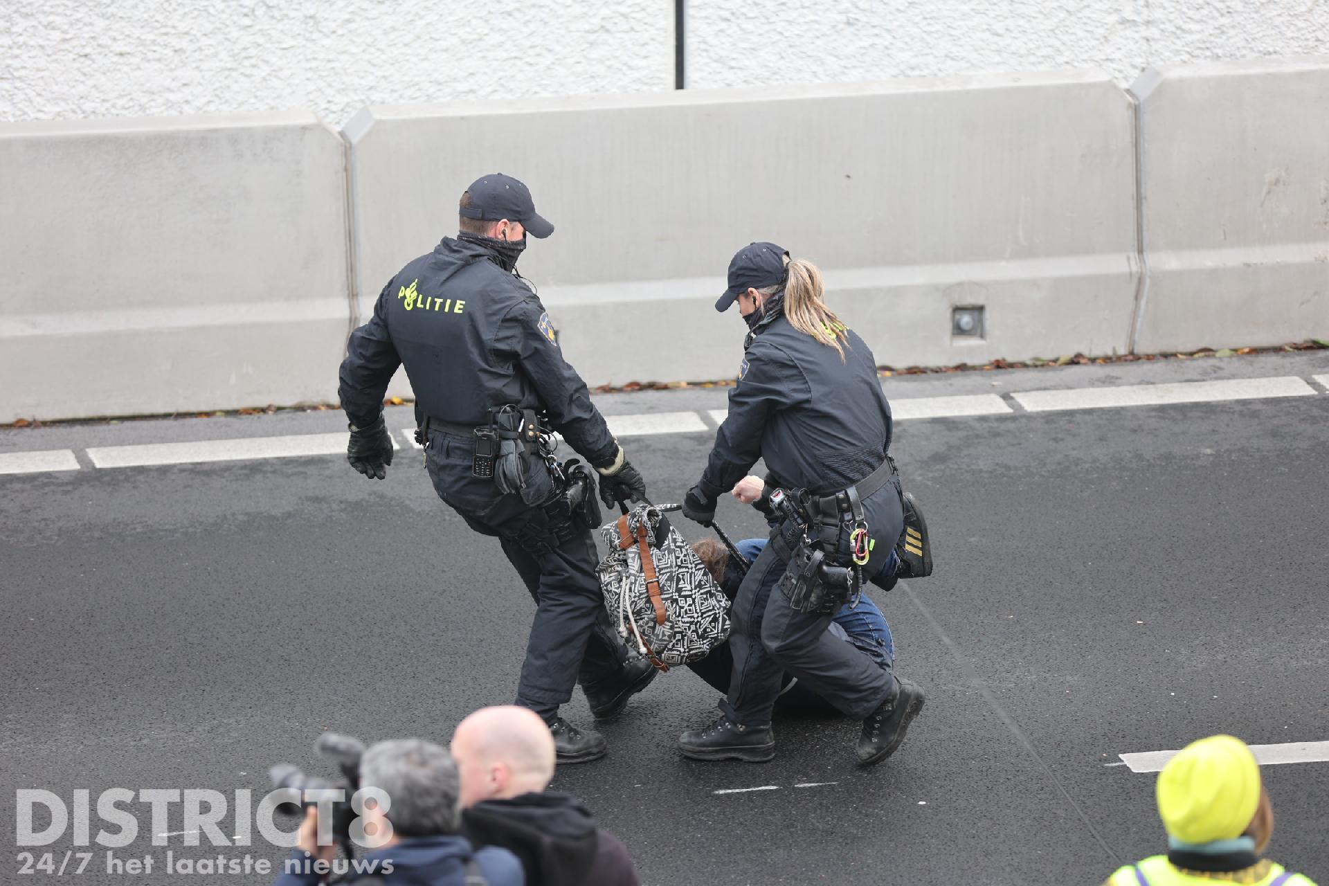 Actievoerders zijn met spandoeken de rijbaan op gegaan, inmiddels is de A12 stad in- en uit afgesloten door de politie. De politie is ter plaatse en maakt een plan van aanpak om de actievoerders te verwijderen.