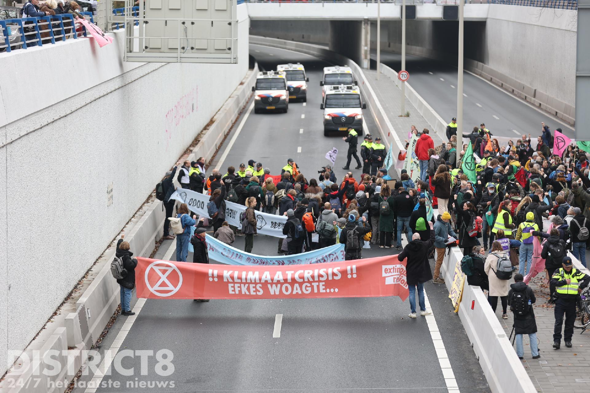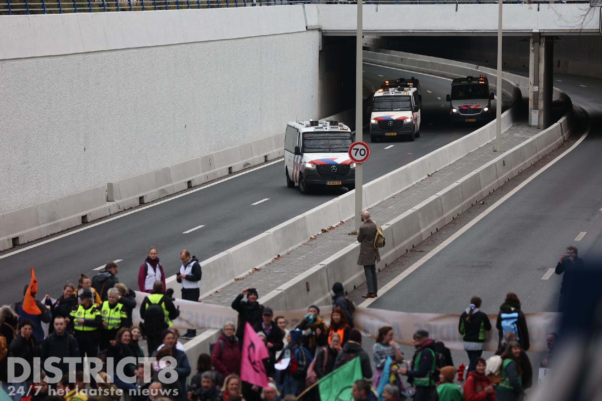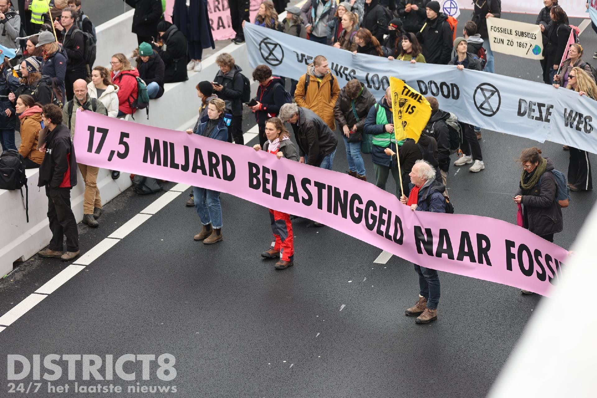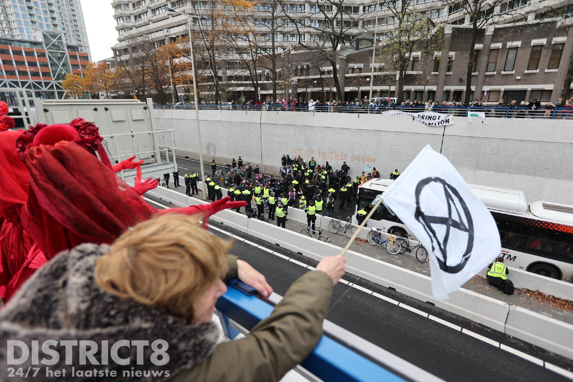 Den Haag – Actievoerder van Extincion Rebellion hebben zaterdagmiddag rond de klok van 12 de A12 / Utrechtsebaan ter hoogte van de tijdelijke Tweede Kamer geblokkeerd.