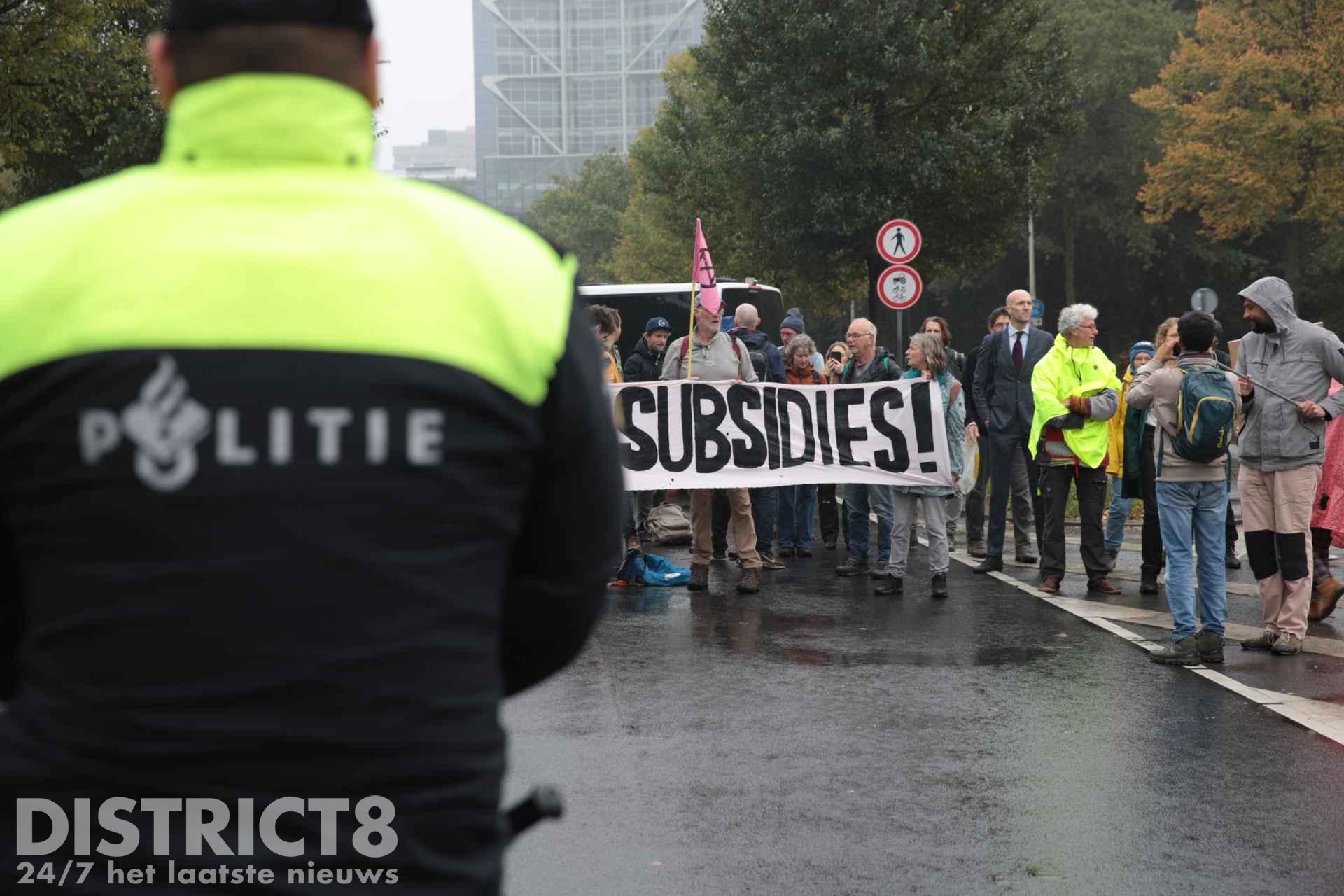 De demonstranten blokkeren de A12 tussen het Tweede Kamer-gebouw en de Ministerie van Economische Zaken en Klimaat.