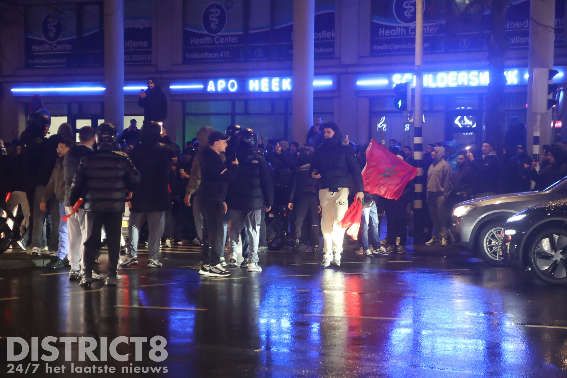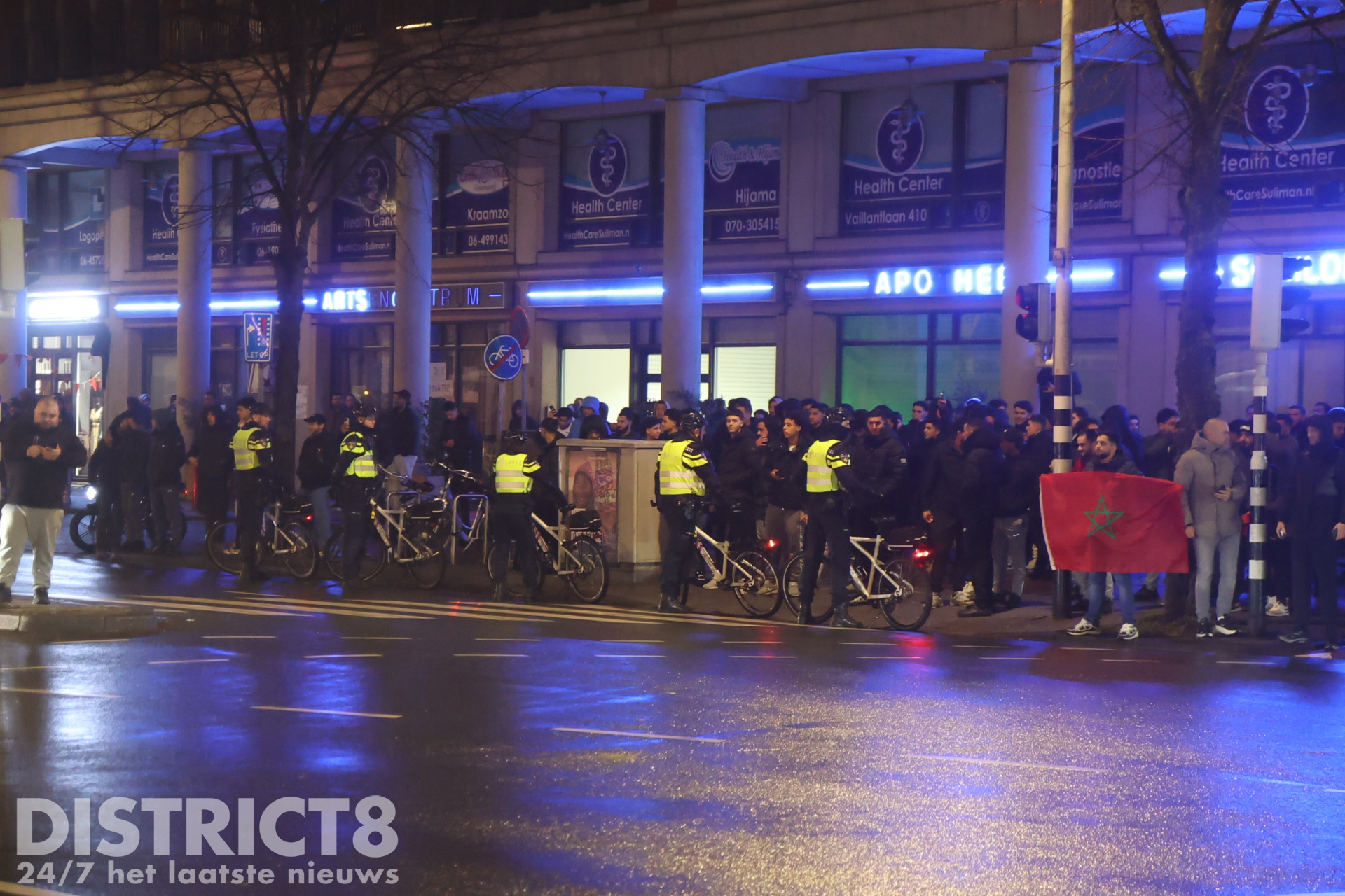 Den Haag – Woensdagavond verzamelden zich veel jongeren op straat in de Haagse Schilderswijk na de overwinning van Marokko tegen Nigeria in de Afrika Cup. De politie was preventief aanwezig en verhinderde dat de jongeren de kruispunten opgingen.