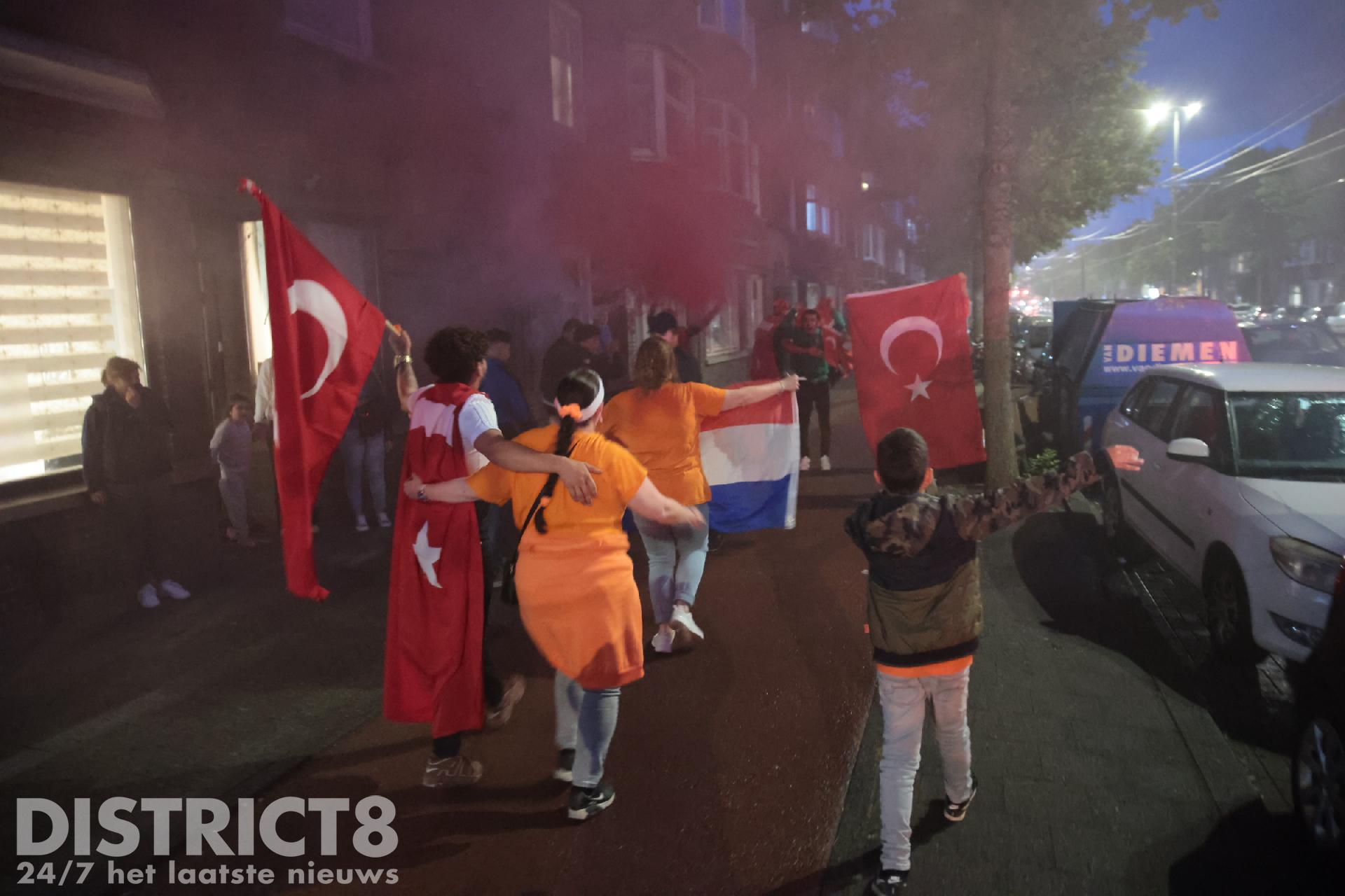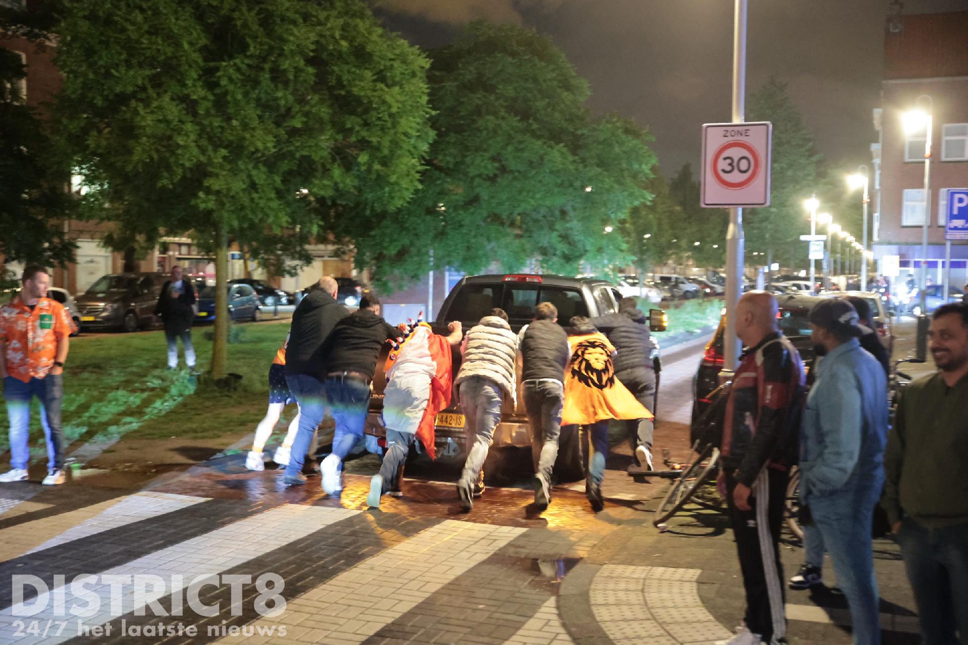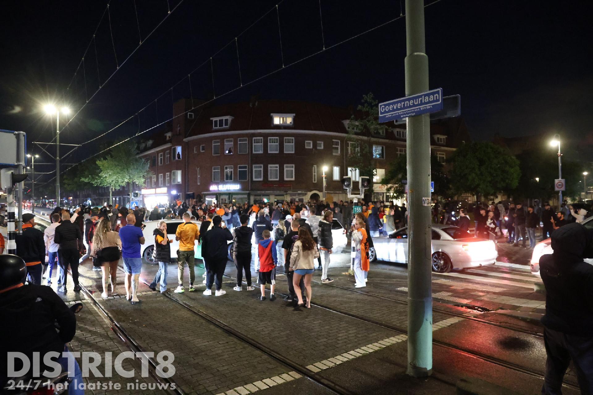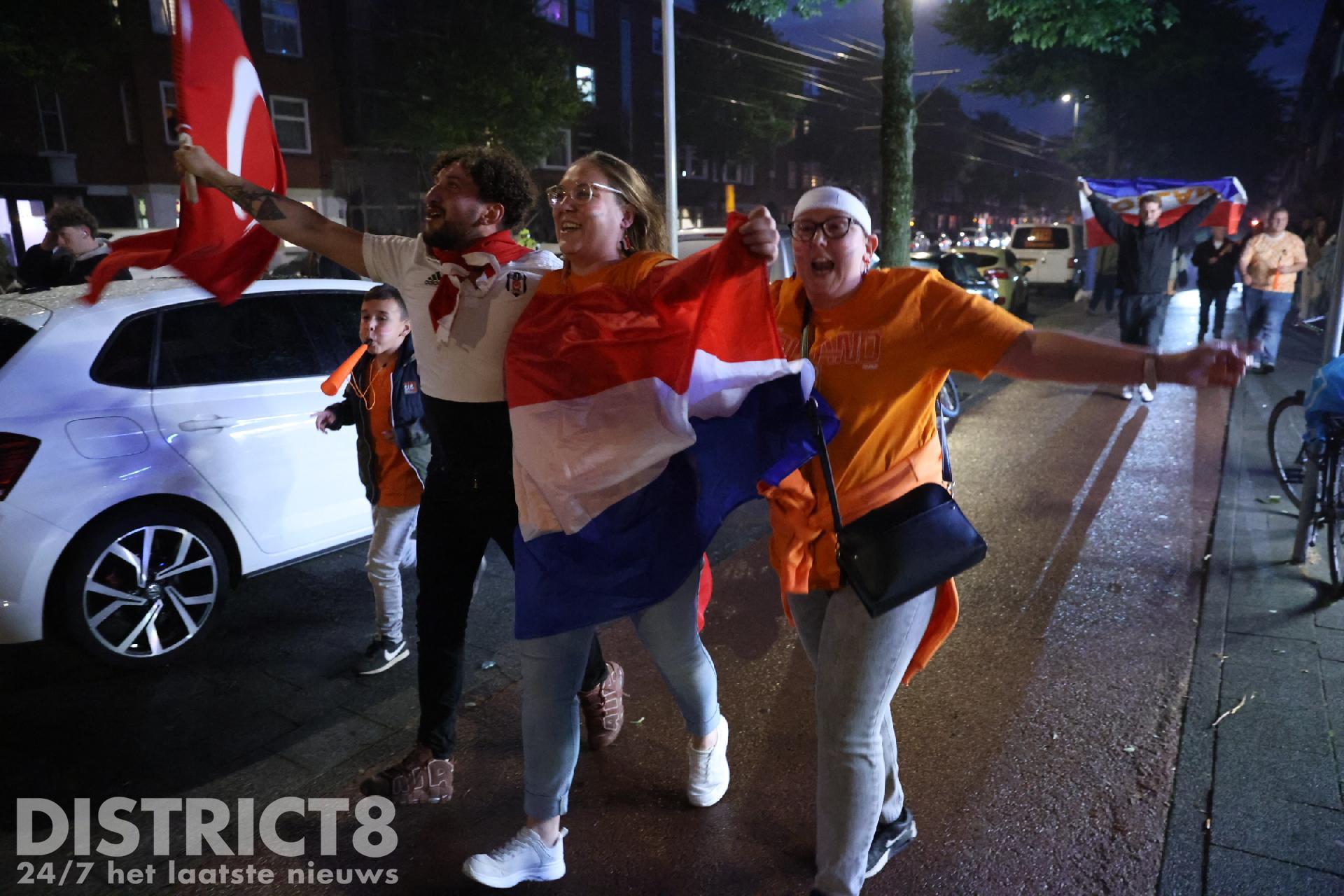 Den Haag – Na afloop van de EK-wedstrijd ‘Nederland – Turkije’ gingen zaterdagavond 6 juli veel mensen de straat op om de winst van het Nederlands elftal te vieren. Zo ook aan de Gouverneurlaan in Den Haag.