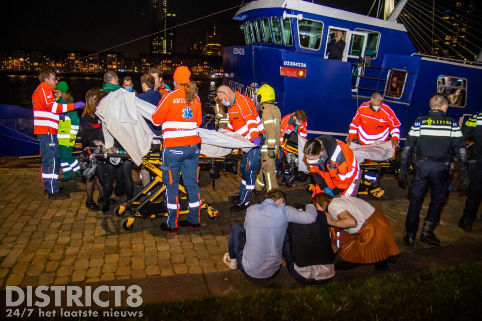 Het schip meerde aan op de Boompjeskade waar de hulpdiensten aan boord gingen. Volgens de woordvoerder van de veiligheidsregio waren ze waarschijnlijk onwel geworden door het overmatig gebruik van alcohol.