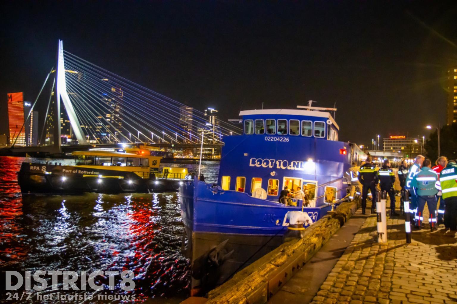Rotterdam – Vrijdagavond zijn de hulpdiensten massaal opgeroepen naar de Boompjeskade in Rotterdam. Op een partyboot waren een tiental personen onwel geworden. Een tiental ambulances, twee traumahelikopters, de brandweer en meerdere politie-eenheden werden opgeroepen. Nog voor aankomst van de tweede traumahelikopter werd deze gecanceld.