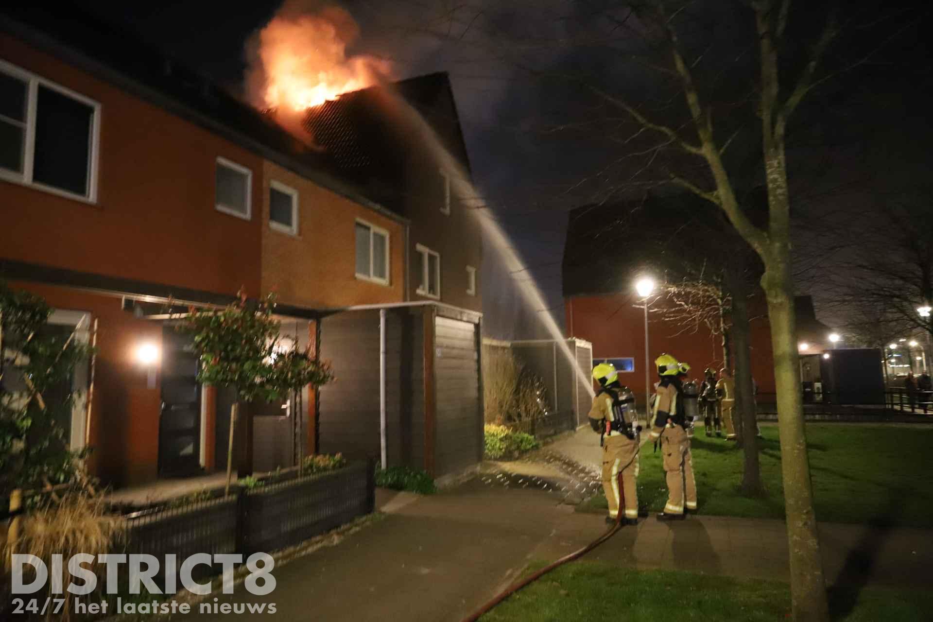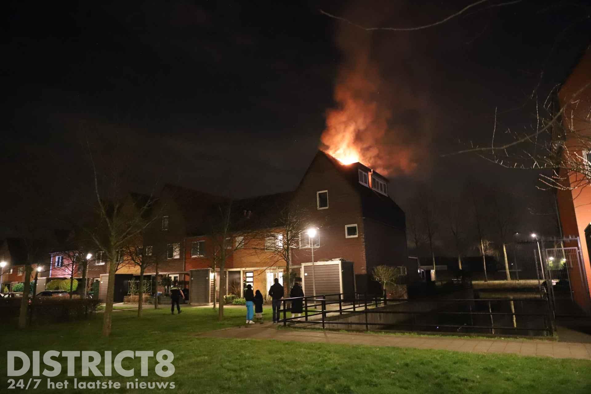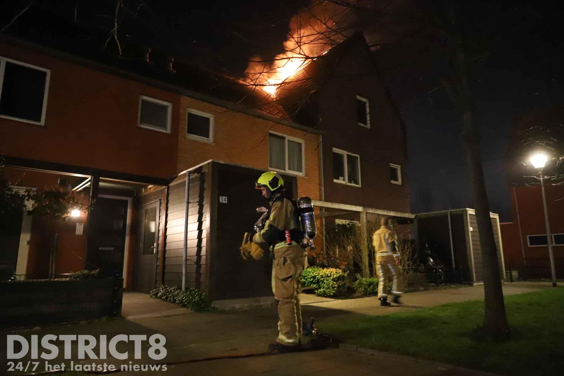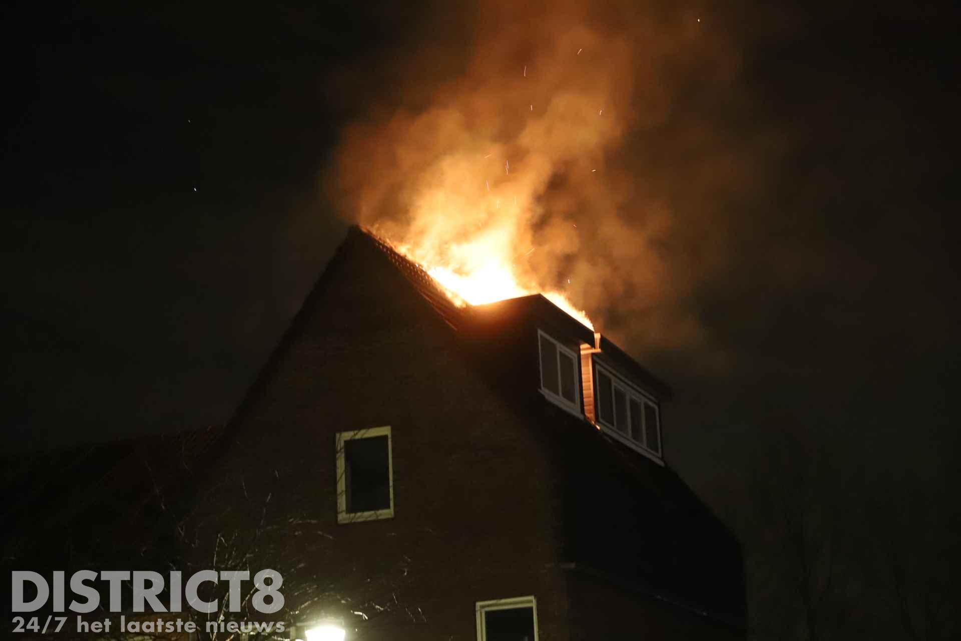 Felle uitslaande brand verwoest dak van woning Van Veendijk Den Haag