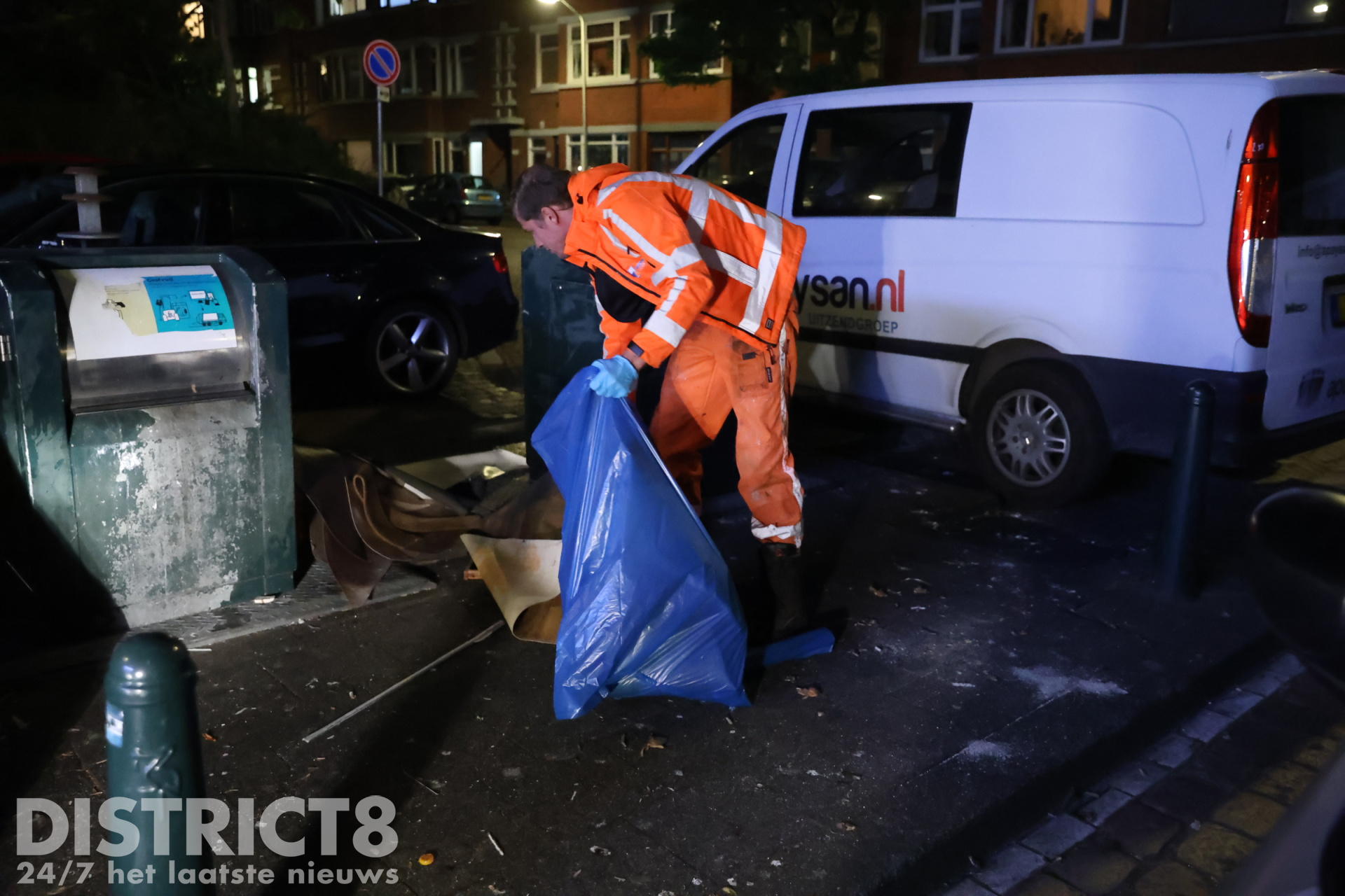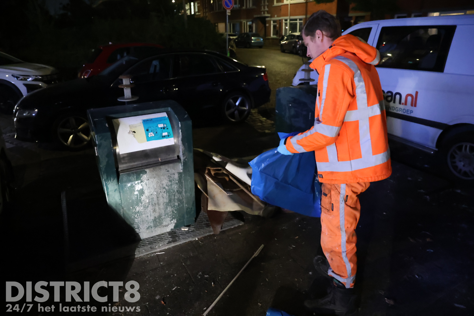 Hierop werd besloten de gemeente ter plaatse te laten komen om het afval weg te halen. Het afval lag inmiddels op straat, naast een ondergrondse container en er lag vuil in de bosschages.