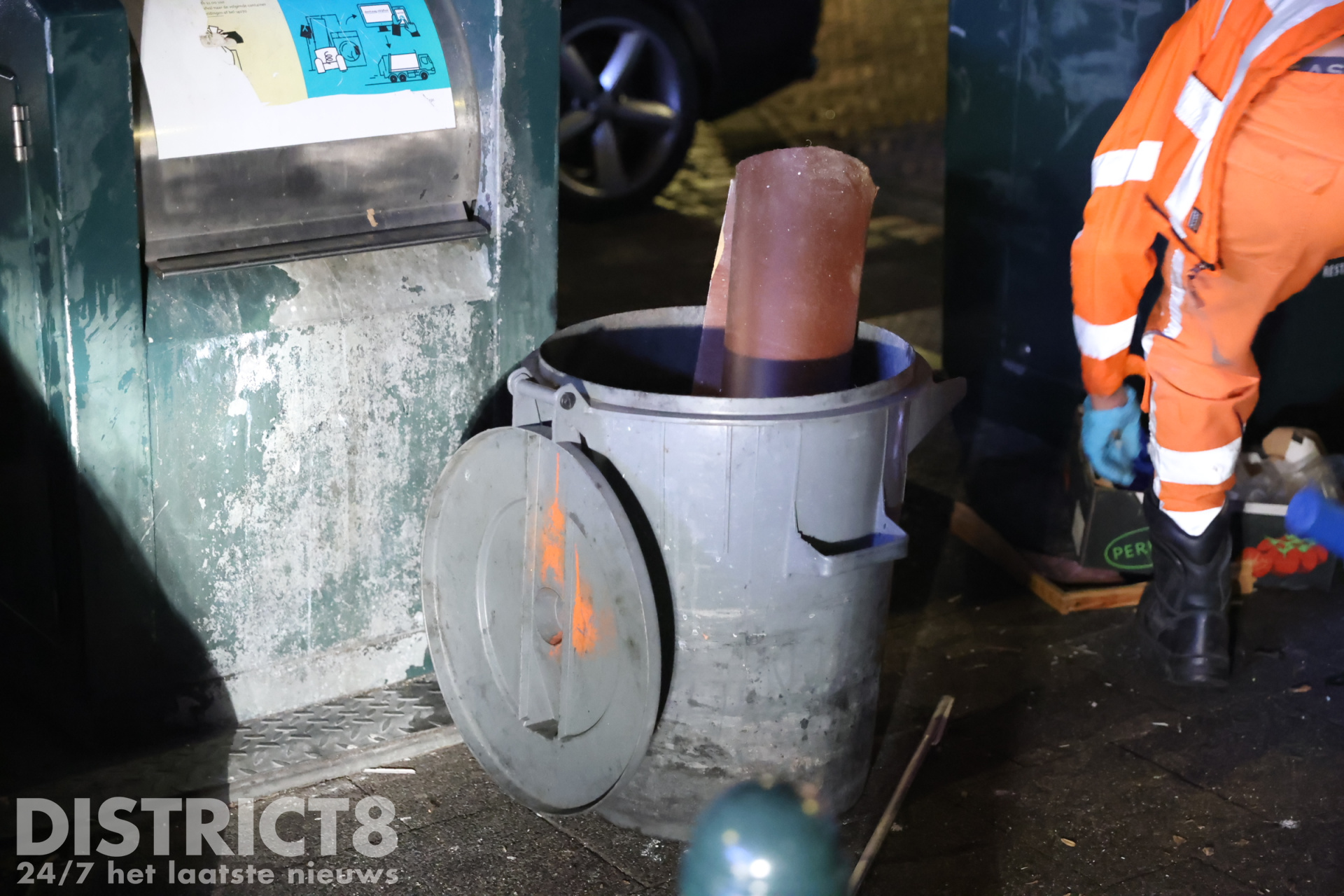 De gemeente heeft een gespecialiseerd bedrijf ingeschakeld om het afval te verwijderen en het flesje met penetrant middel af te voeren.