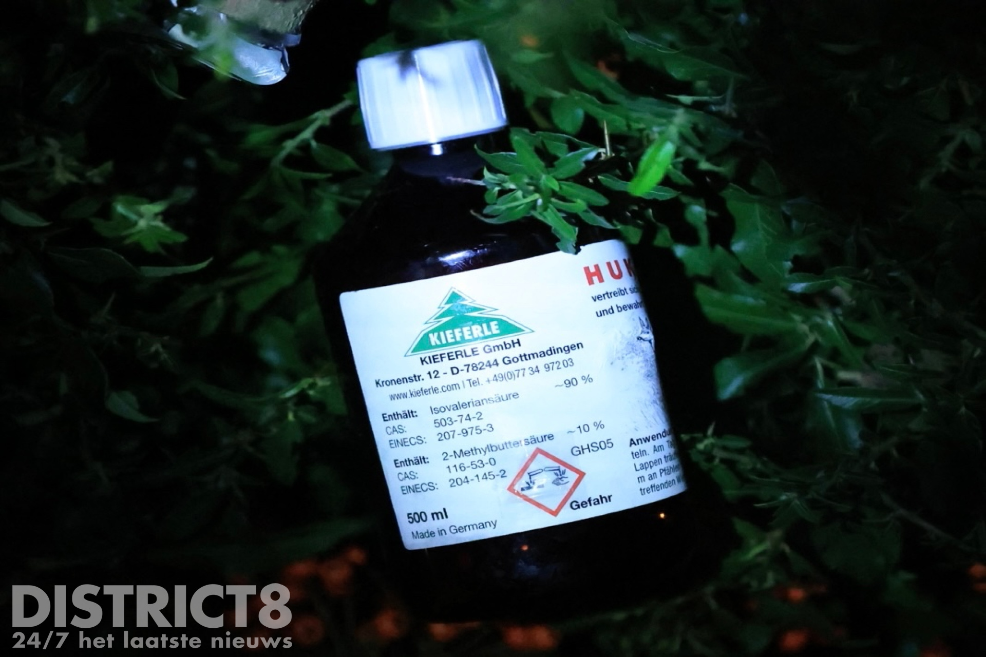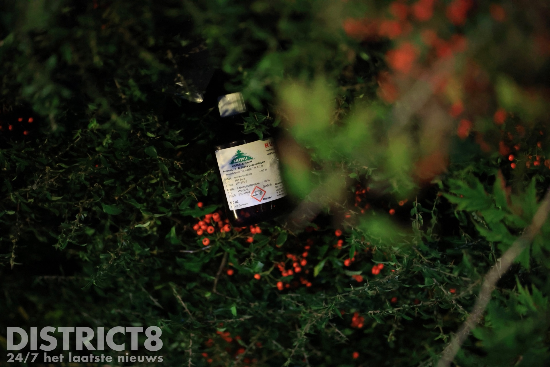Bij het vuil in de bosschages werd een flesje aangetroffen van waaruit de penetrante geur afkomstig was. Het bleek na onderzoek een middel te zijn uit het buitenland, waar het in de tuinbouw gebruikt wordt om wilde dieren weg te houden bij de gewassen. De geur is die van menselijk zweet en dit middel was over tapijt gespoten wat in de berg met afval lag. Dit zorgde voor de penetrante geur in de omgeving.