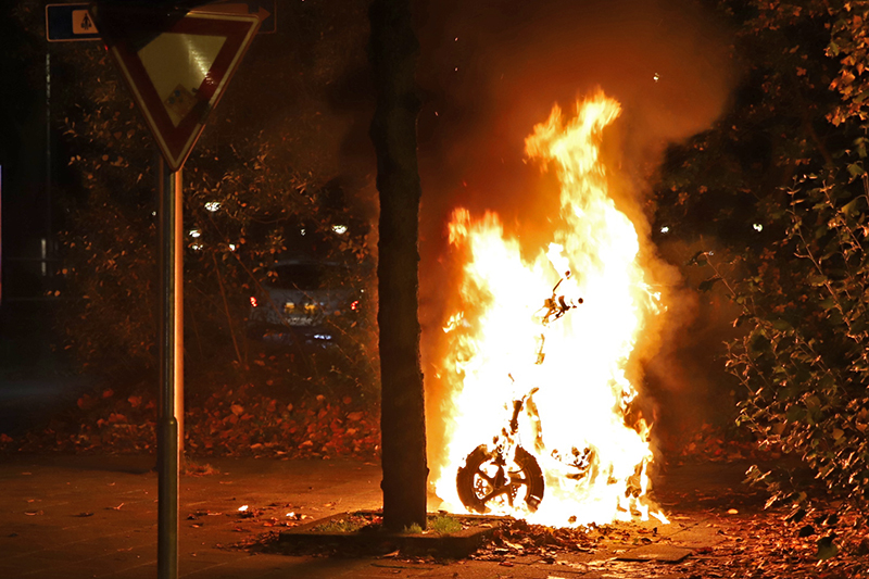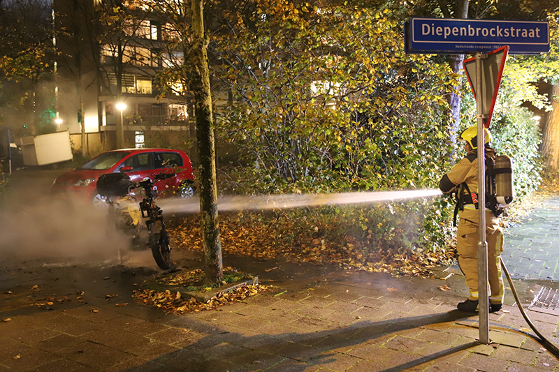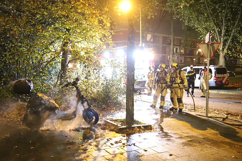 Felyx scooter in brand gestoken Diepenbrockstraat Delft