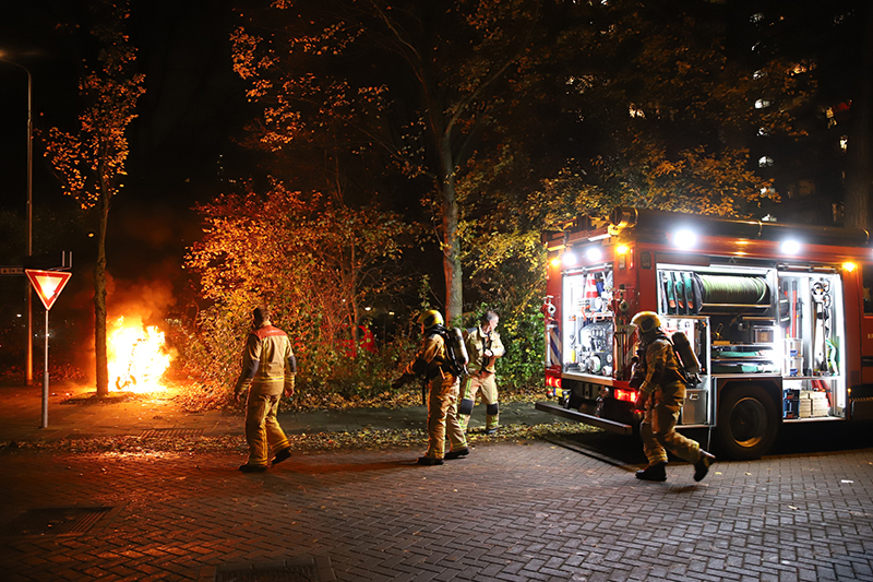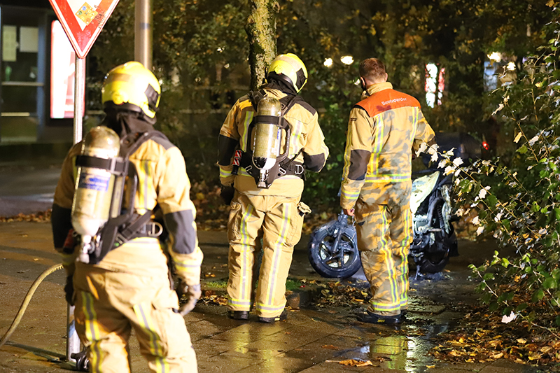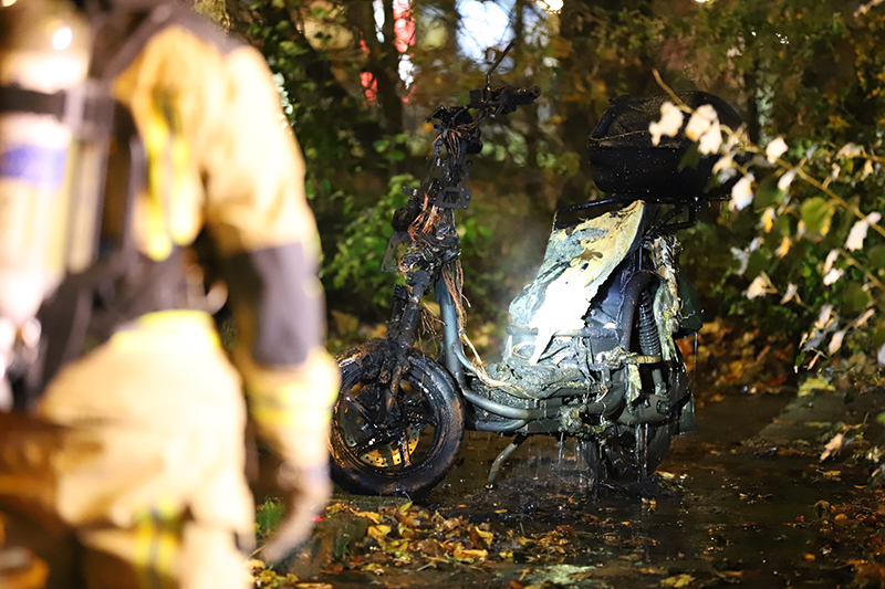 Getuigen zagen twee personen staan bij de scooter die op de kruising geparkeerd stond, even later sloegen de vlammen uit de scooter. Direct werd de brandweer met spoed gealarmeerd.