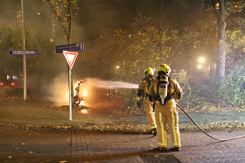 Delft – Dinsdagavond 17 november is er op de kruising van de Diepenbrockstraat met de Buitenhofdreef een Felyx scooter in brand gestoken.