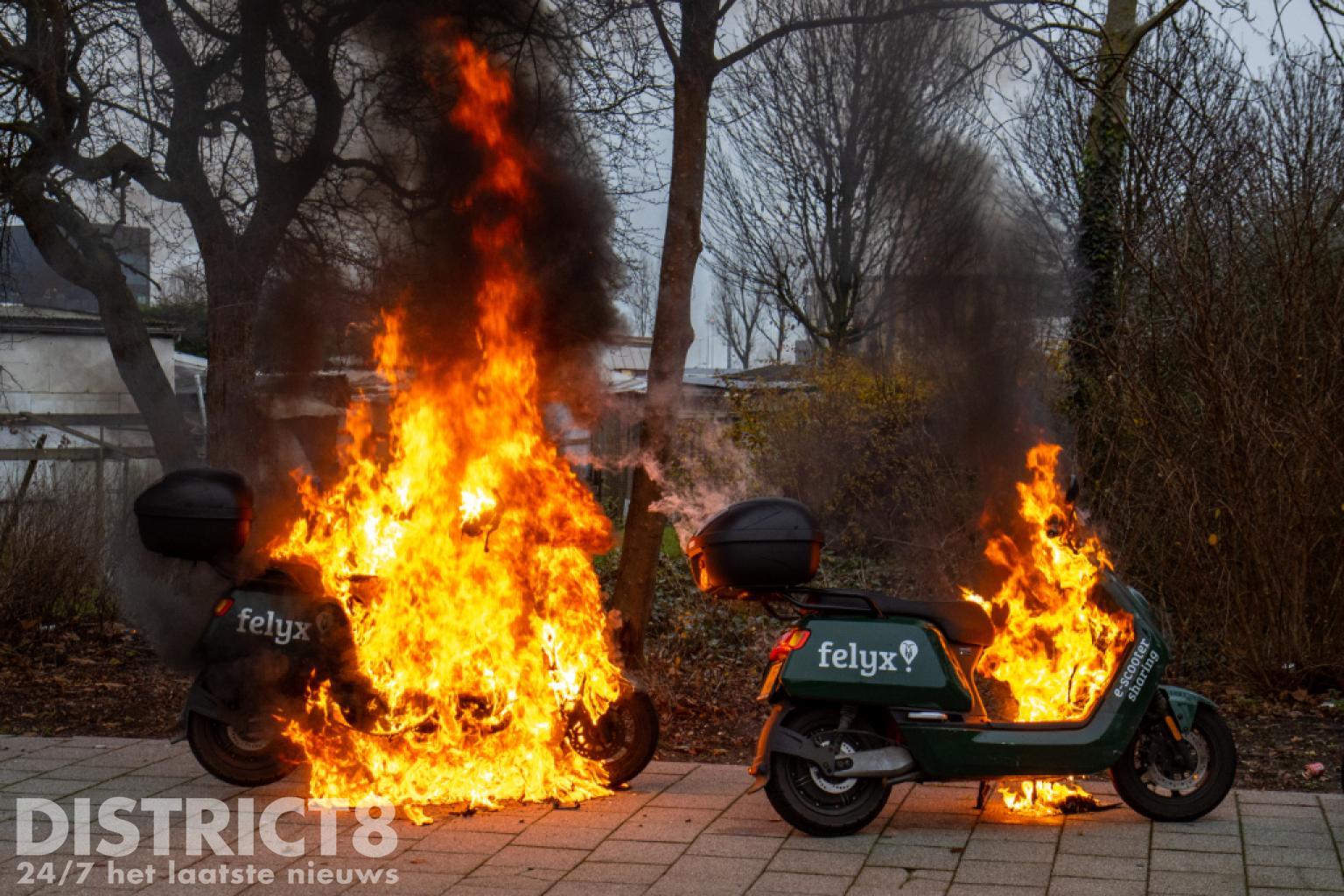 Rotterdam – Jongeren hebben zaterdagmiddag een Felyx scooter in brand gestoken aan de Schipholstraat.