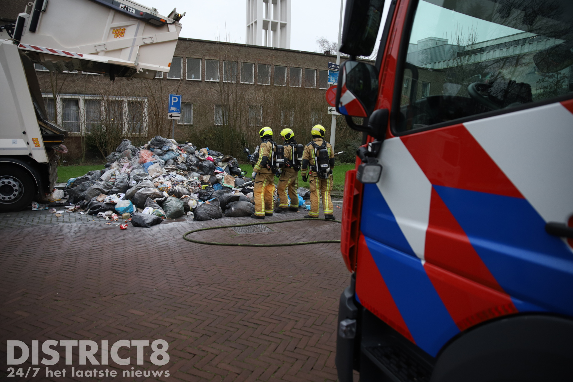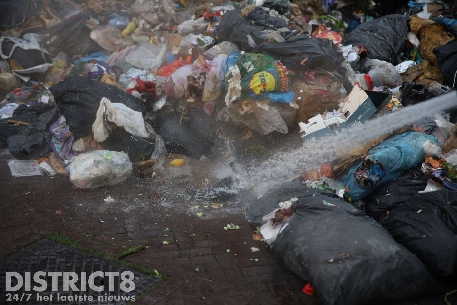 Een fietsaccu bleek vlam te hebben gevat wat de brand heeft veroorzaakt, deze is afgeblust en apart gelegd. De afvaldienst van de gemeente draagt zorg voor het afvoeren van het op straat gedumpte afval.