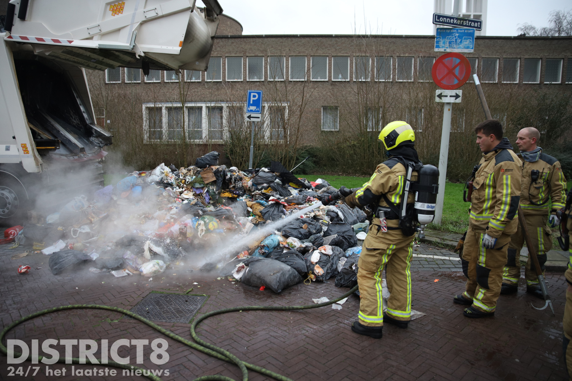De bestuurder twijfelde geen moment en stopte zijn wagen op de Lonnekerstraat, hier dumpte hij de inhoud van zijn vuilniswagen op straat. Hij belde 112 waarop de brandweer met spoed ter plaatse kwam.