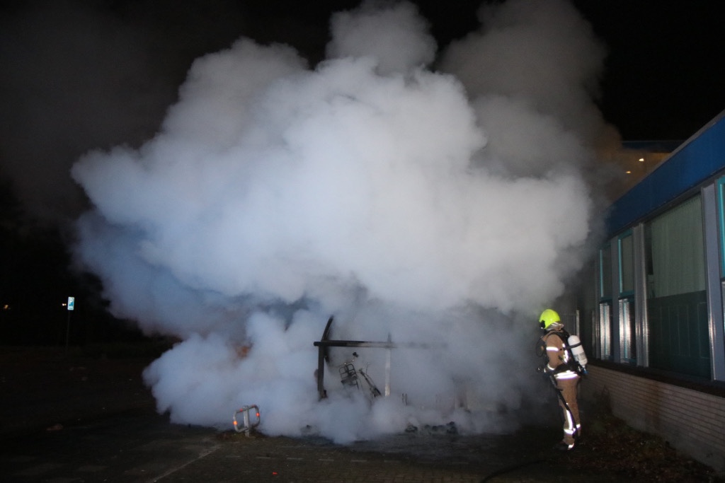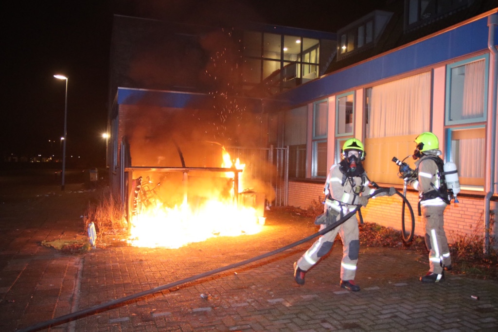 Schiedam – Aan de Olivier van Noortstraat is in de nacht van maandag op dinsdag een fietsenstalling in rook op gegaan. De brandweer heeft een hogedrukstraal ingezet om het vuur te doven.