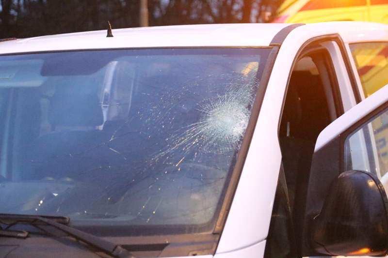 De voorruit van het busje en die fiets raakten bij de aanrijding beschadigd.