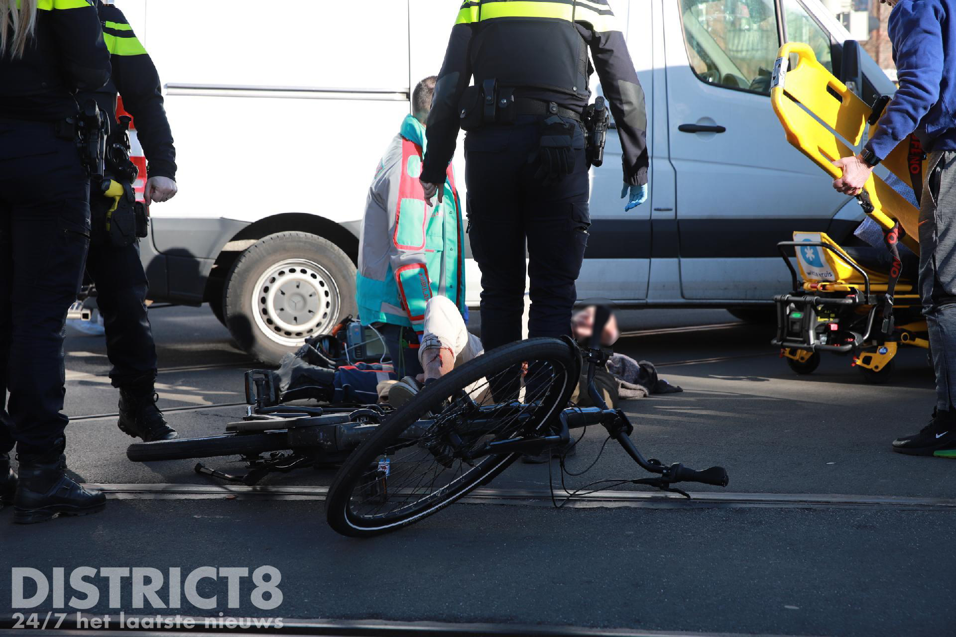 De fietser kwam bij de aanrijding hard ten val. Naast meerdere politie-eenheden en een ambulance werd er ook een traumahelikopter gealarmeerd.