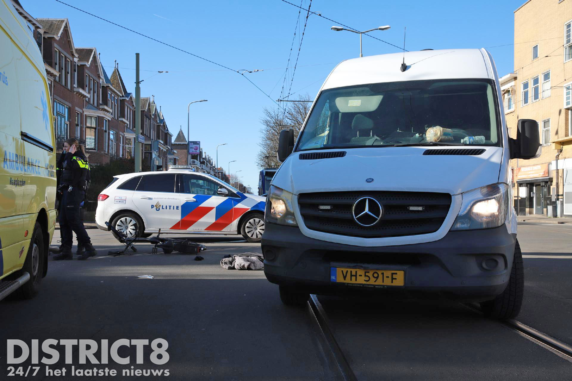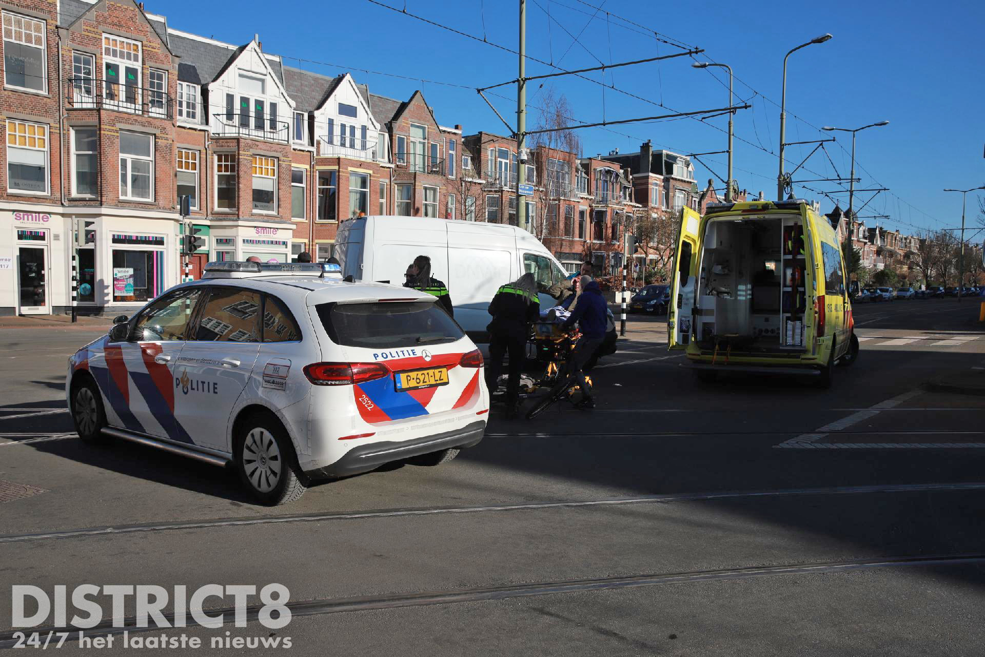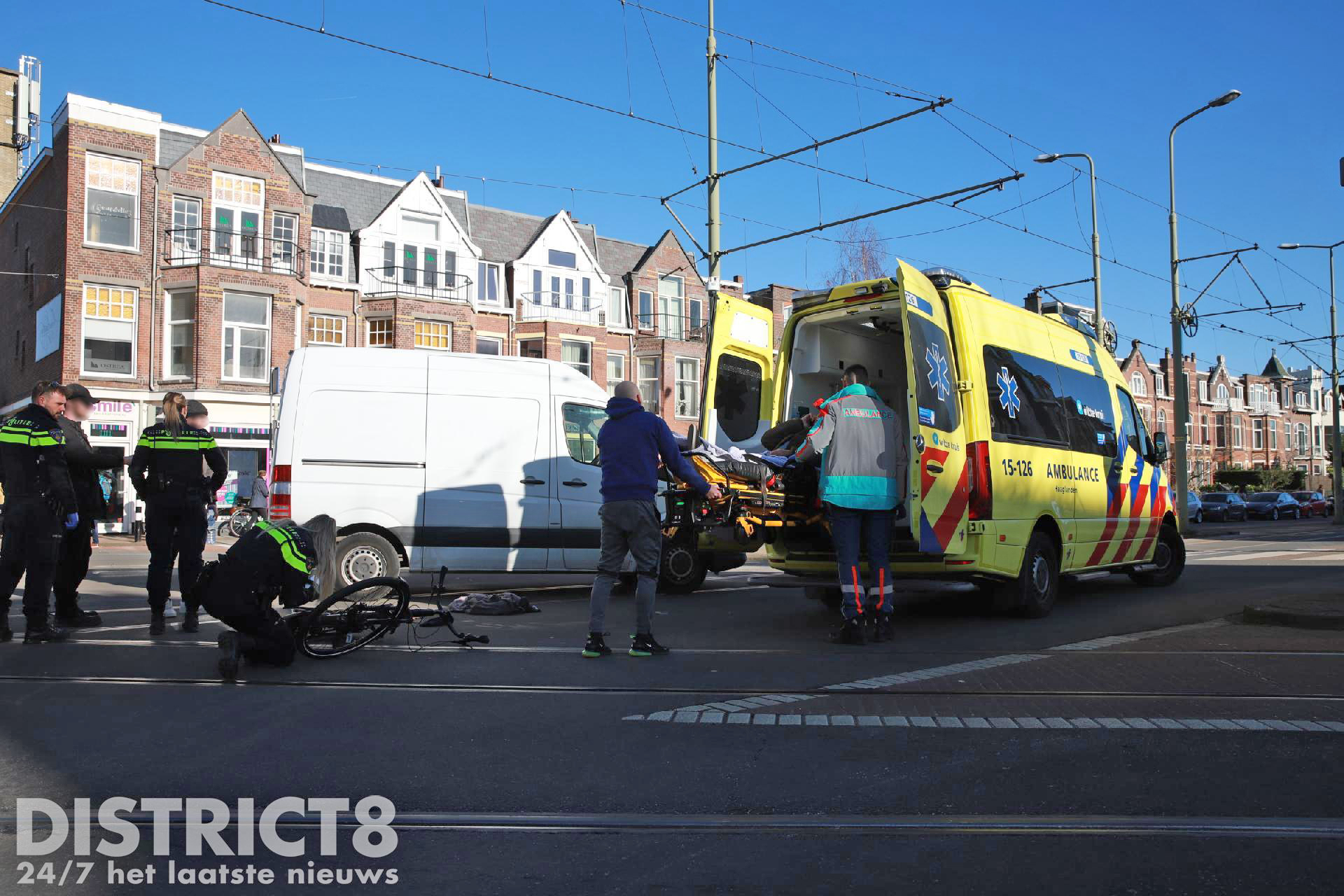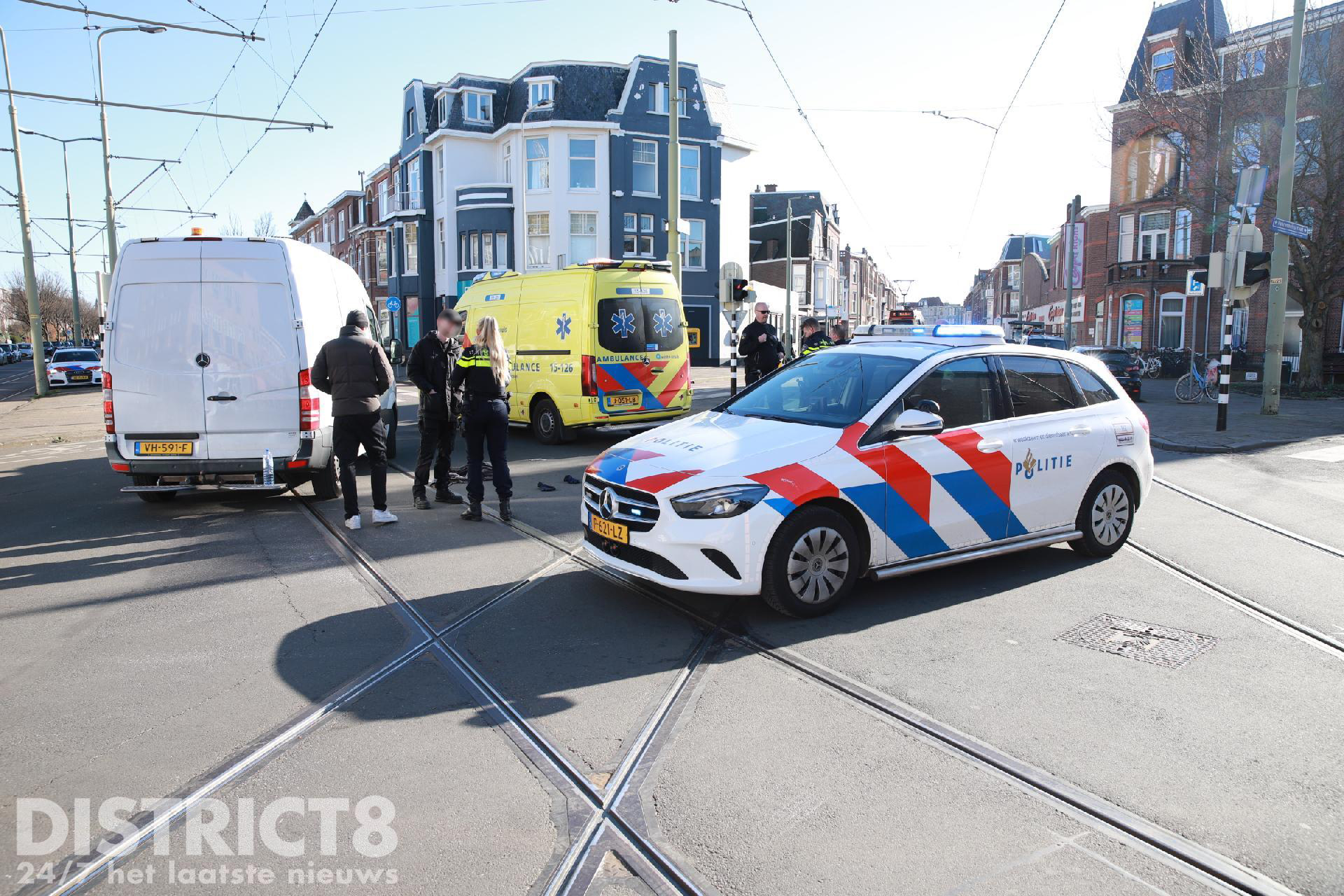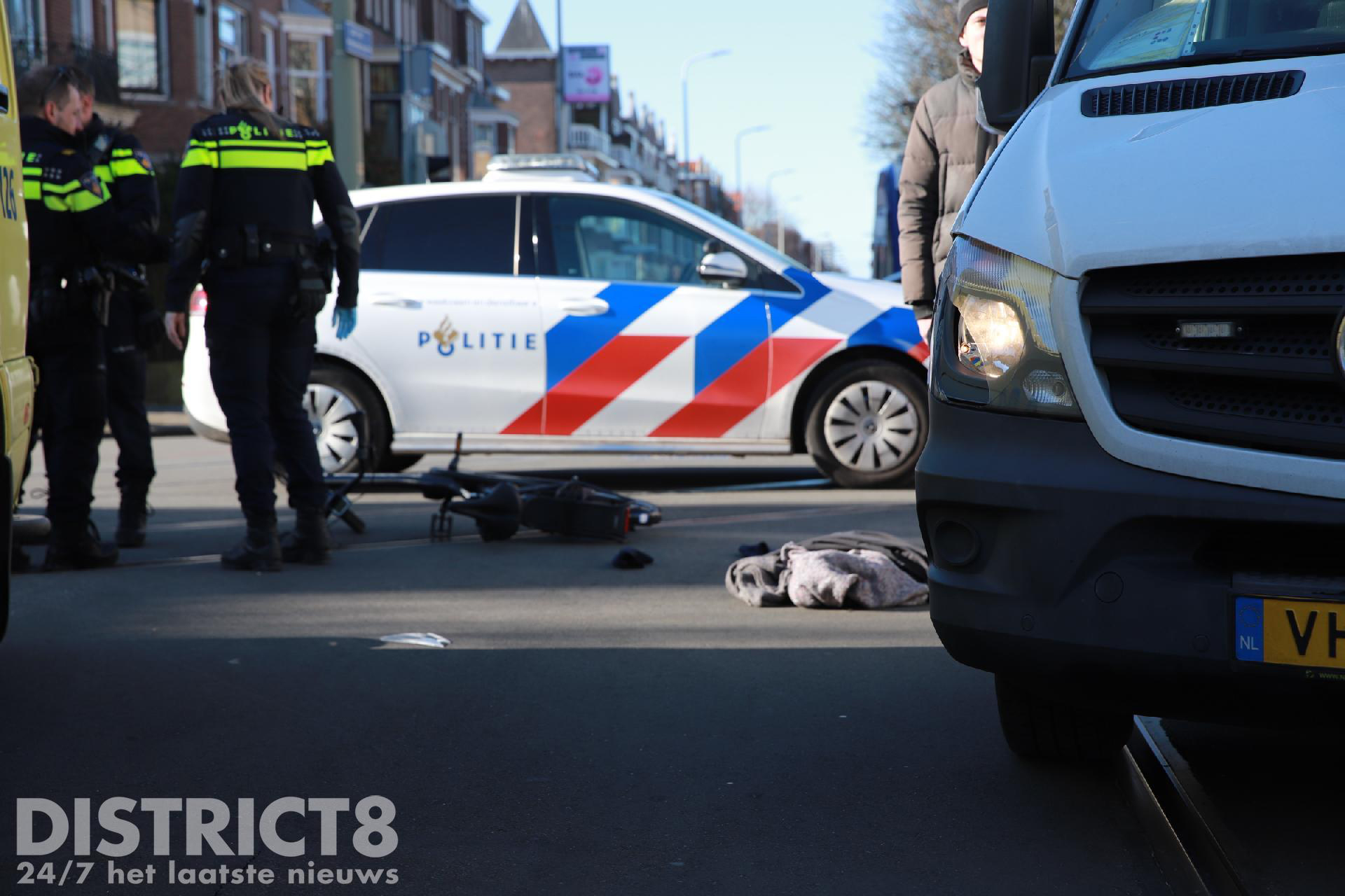 Den Haag – Op de kruising van de Laan van Meerdervoort met de Fahrenheitstraat in Den Haag is zondagochtend 26 februari een fietser aangereden door een bestelbus.