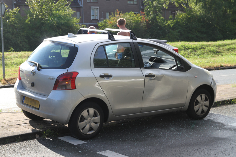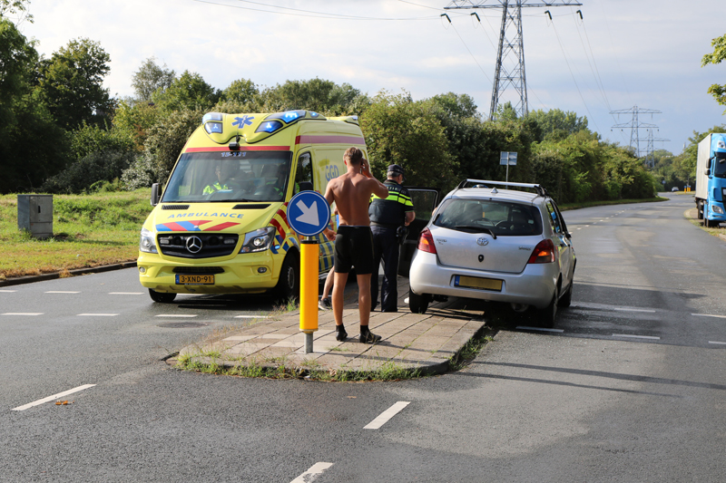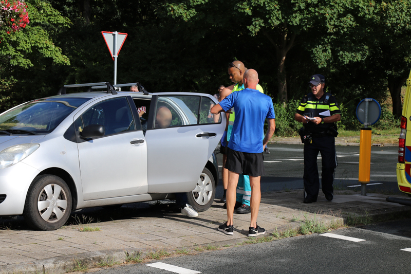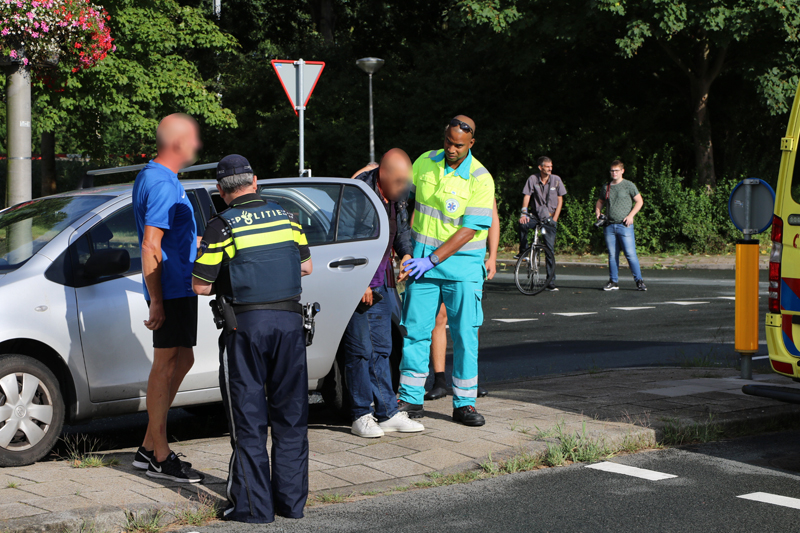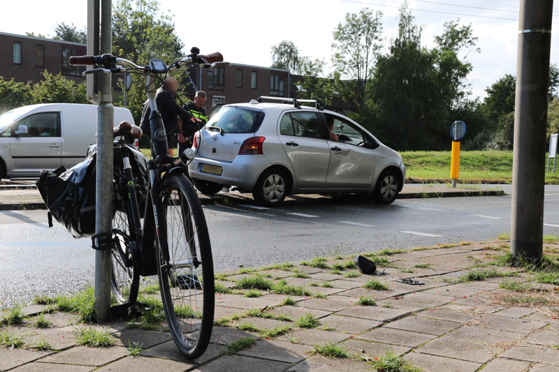 De fietser zag de auto die van links aan kwam rijden kennelijk over het hoofd en reed tegen het rechter portier van de auto aan.