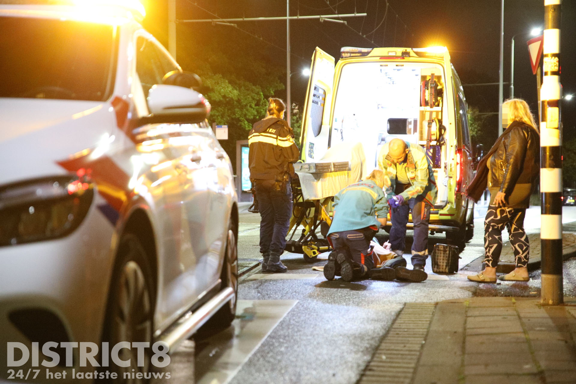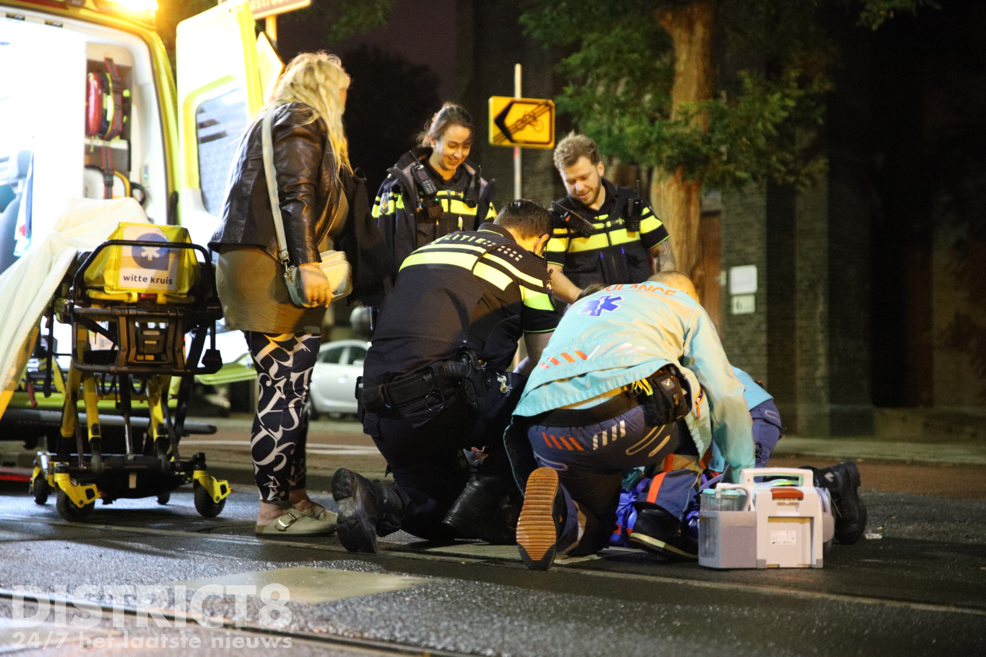 Een ambulance kwam ter plaatse en stabiliseerde het slachtoffer op straat voordat hij op een brancard werd geplaatst. De fietser is vervolgens naar het ziekenhuis vervoerd.