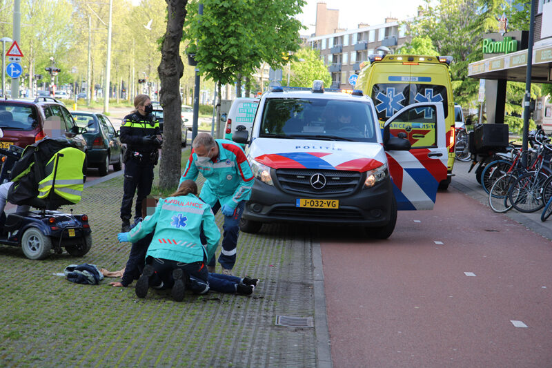Delft – Aan de Papsouwselaan in Delft zijn woensdagochtend een fietser en een scootmobiel door nog onbekende oorzaak met elkaar in botsing gekomen.
