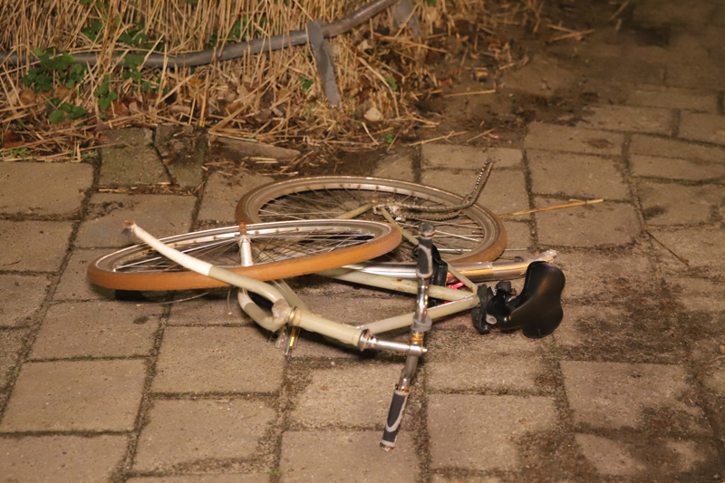 Van zijn fiets is weinig meer over. De politie voert ter plaatse onderzoek uit.