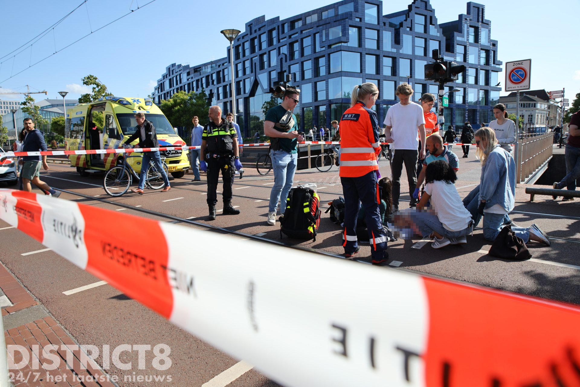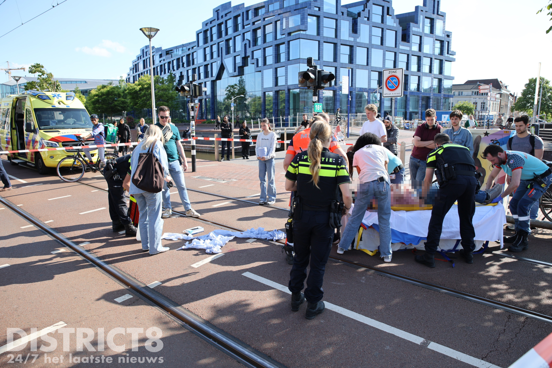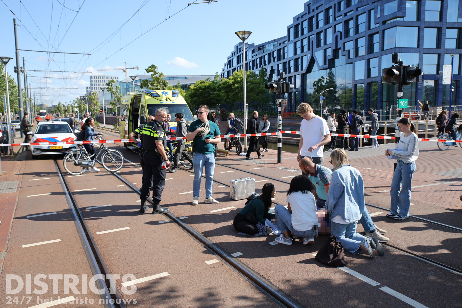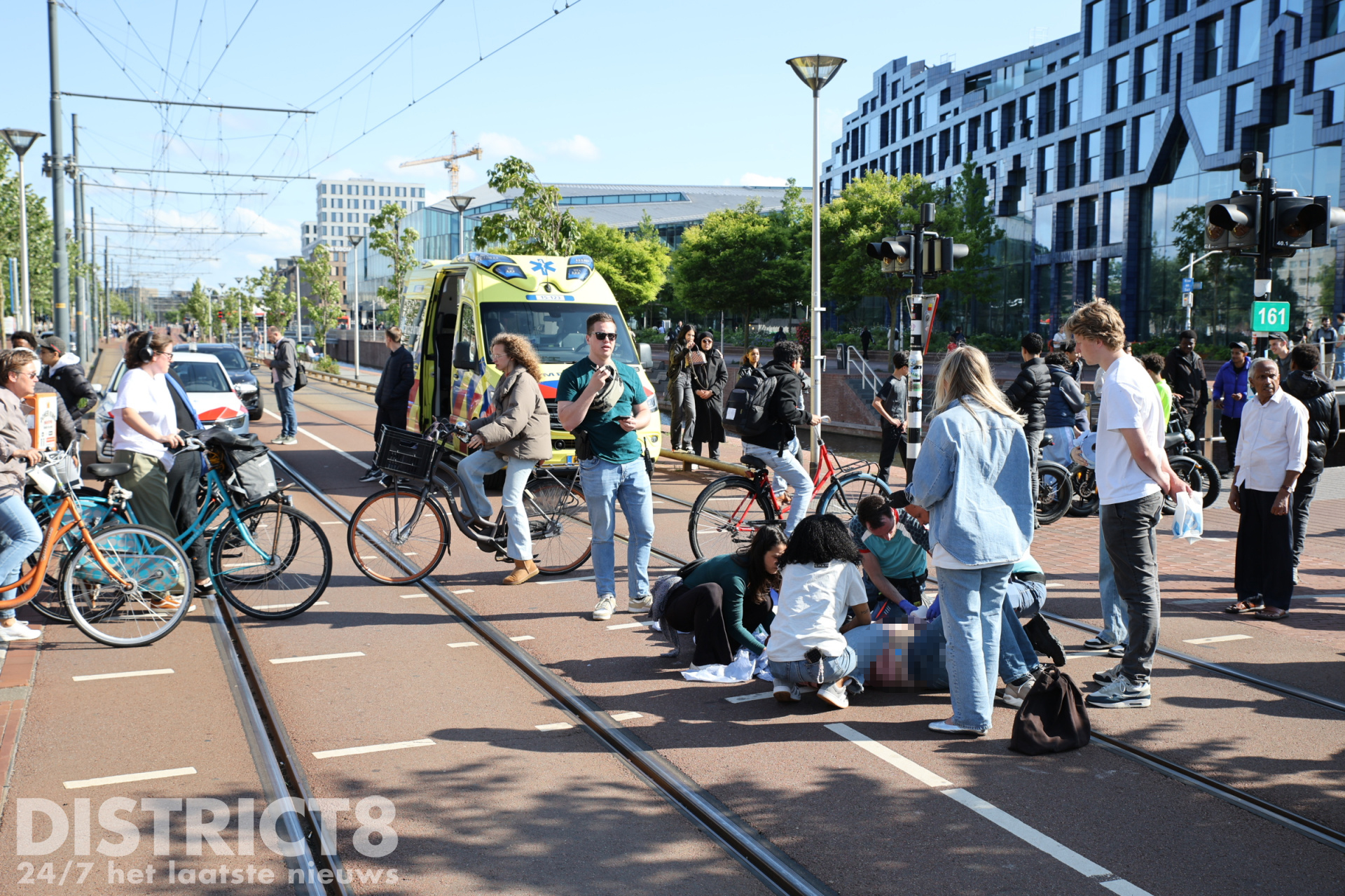 De fietser kwam terecht in de tramrails en kwam hierdoor hard ten val. Het slachtoffer raakte zwaargewond. Omstanders schoten direct te hulp en belden 112.