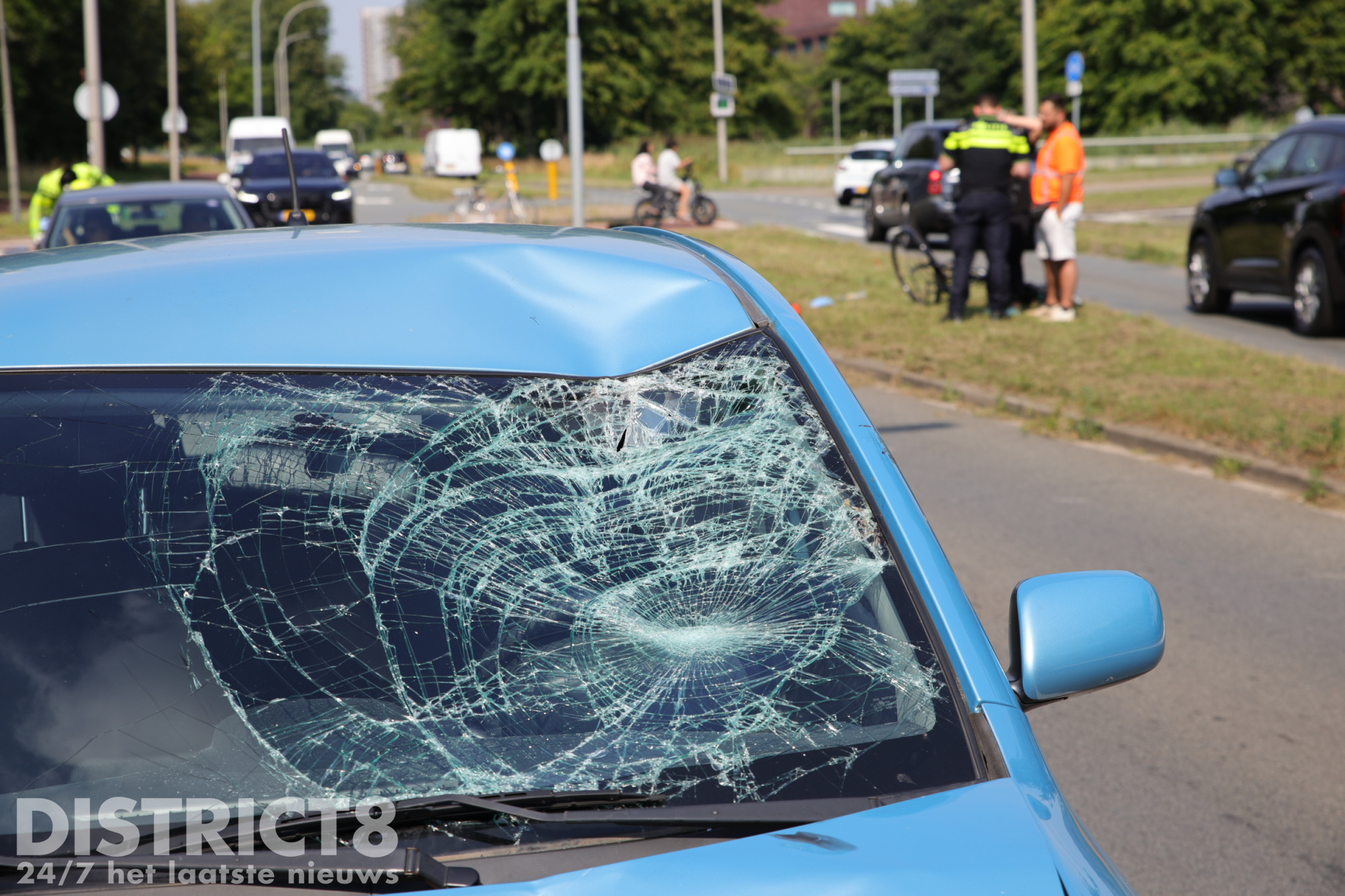 Door de forse klap vloog de fietsster enkele meters door de lucht en kwam hard op de grond terecht. De ambulancedienst en de politie werden met spoed gealarmeerd.