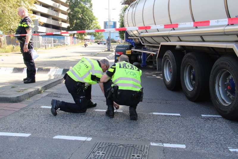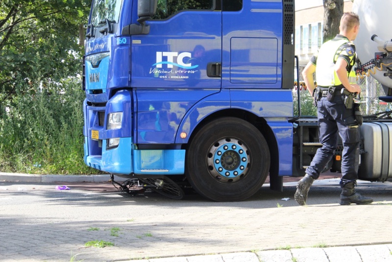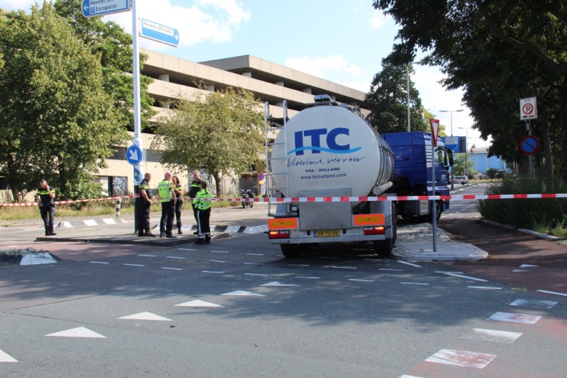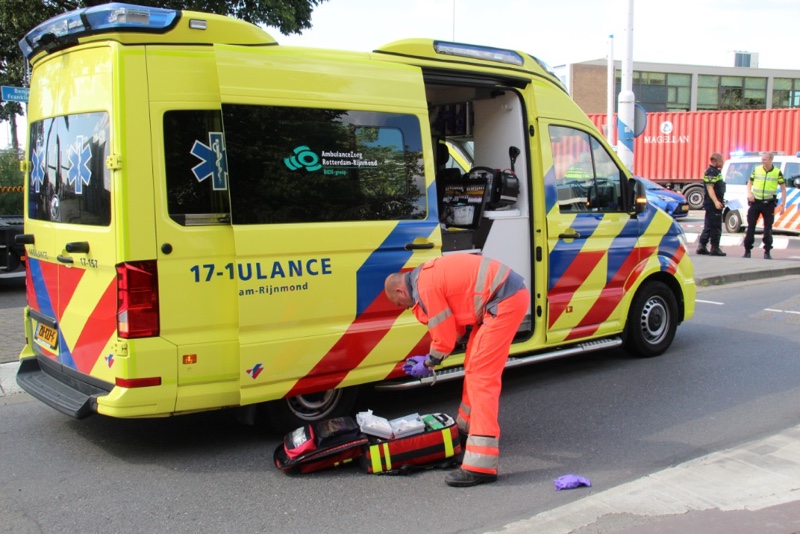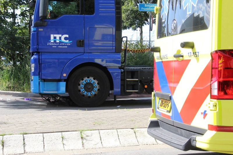 Fietsster onder vrachtwagen, zwaargewond naar het ziekenhuis Benjamin Franklinstraat Rotterdam