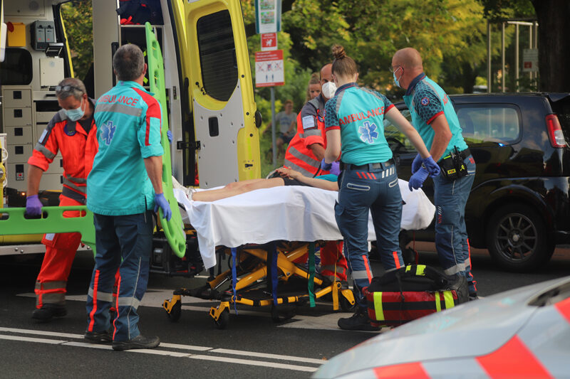 Een ambulance kwam met spoed ter plaatse. Het ambulancepersoneel heeft samen met de arts van het MMT het slachtoffer op straat behandeld. Met de schepplank is het slachtoffer op de brancard gelegd en de ambulance in gereden. Na verdere behandeling in de ambulance is het slachtoffer met spoed (A1) naar het ziekenhuis vervoerd, de MMT arts is niet meegereden naar het ziekenhuis.