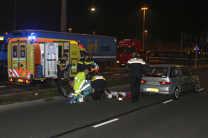 De gewonde vrouw is later overgebracht naar het ziekenhuis. De politie brengt het ongeval in kaart.