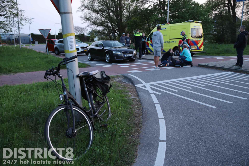 Even voor half negen ging het mis. De fietster werd op de oversteek geschept en kwam daarna hard ten val. Omstanders ontfermden zich direct over het slachtoffer.