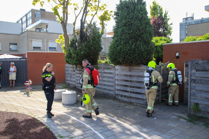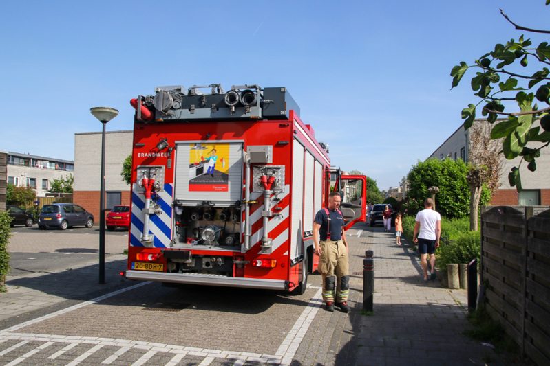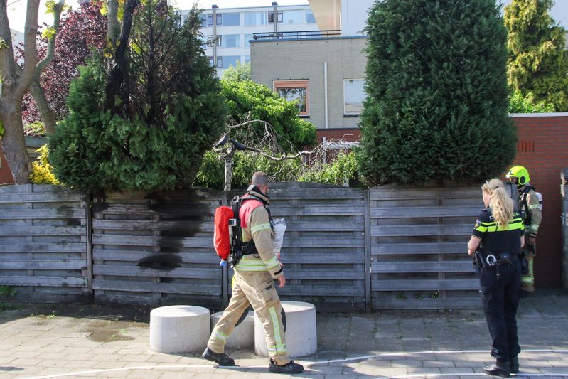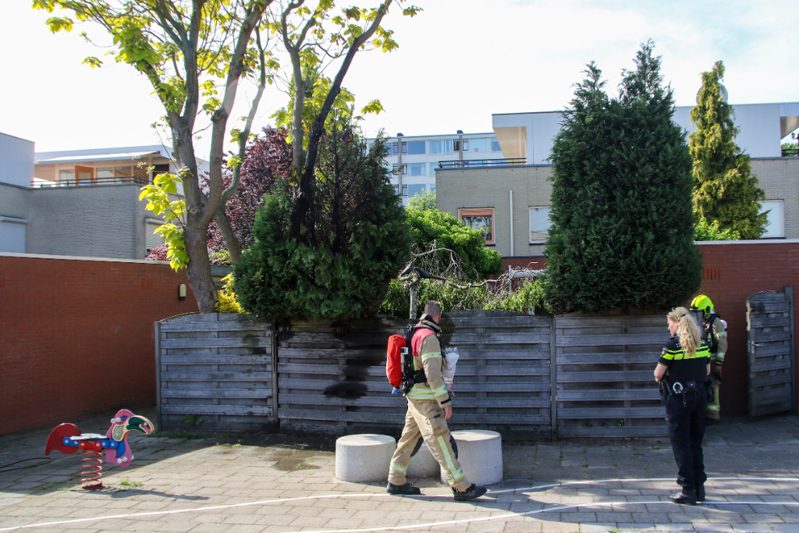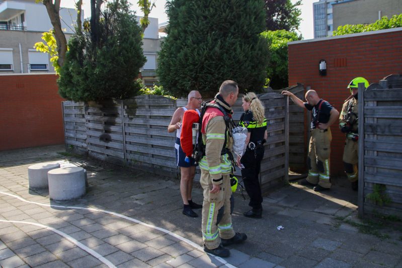 De brandweer ging met spoed ter plaatse maar een achterbuurman nam het heft in handen en bluste het vuur met zijn tuinslang. Voor de brandweer restte alleen nog een nacontrole.