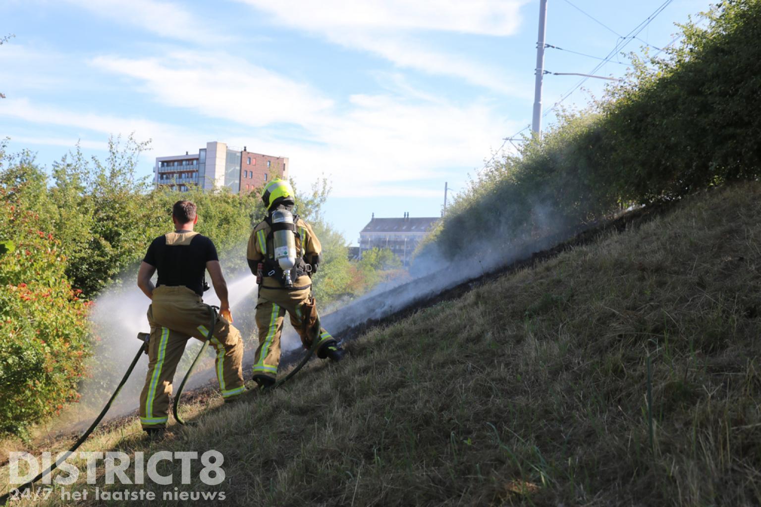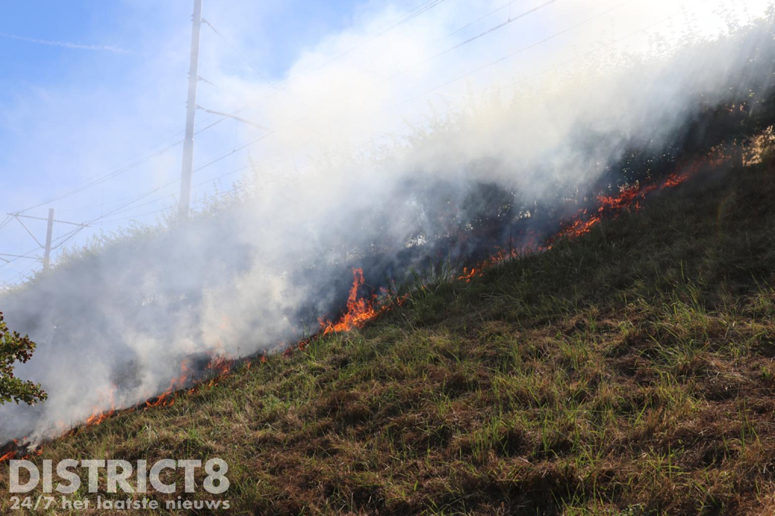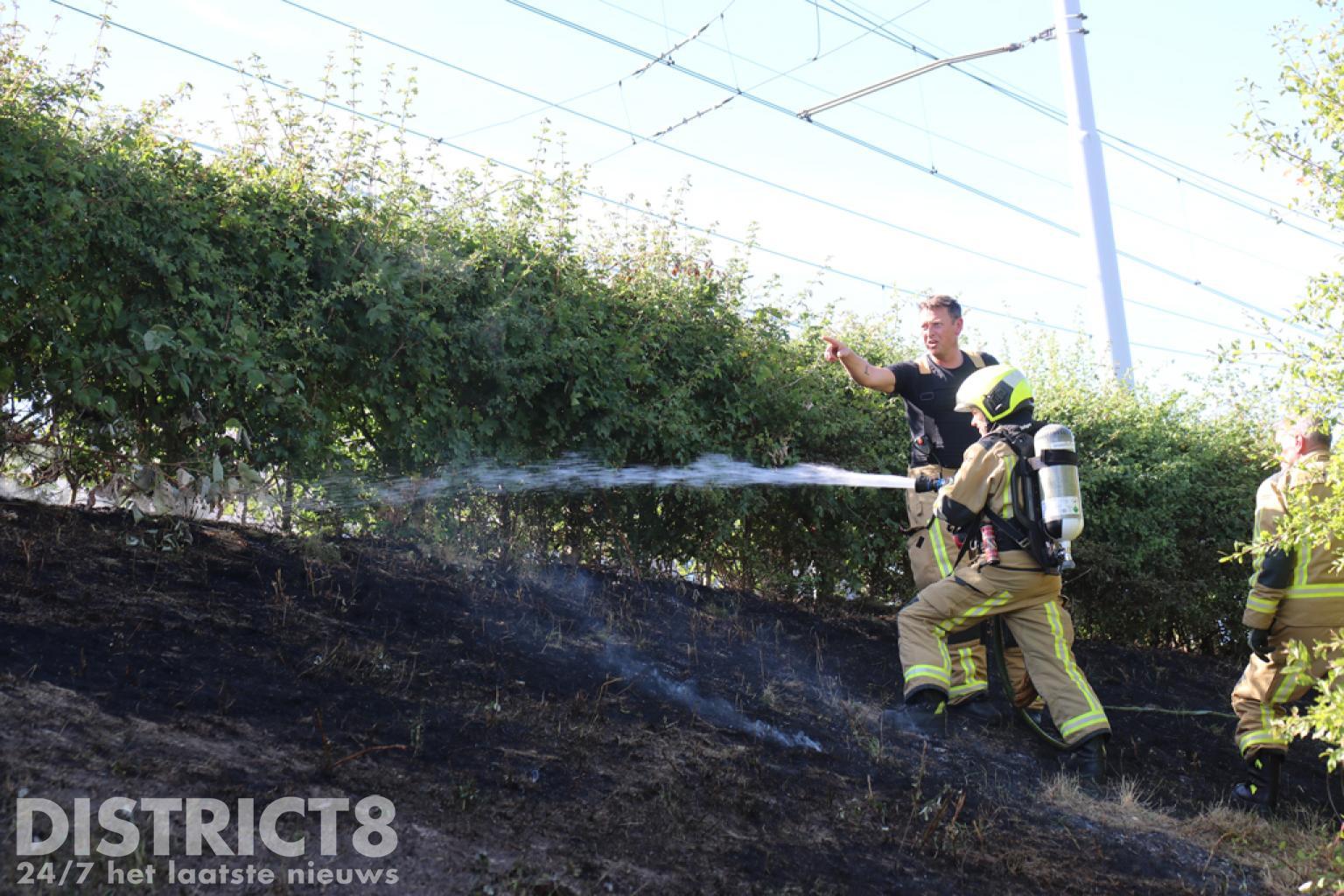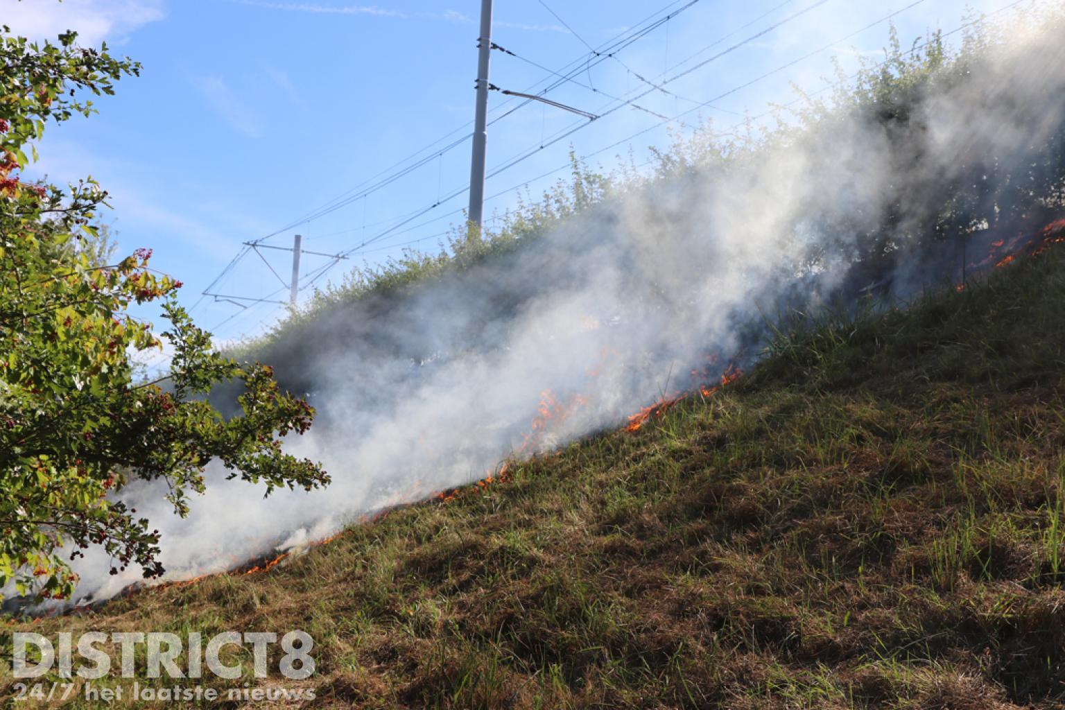 Fikse bermbrand langs Randstadrail spoor Loirestroom Zoetermeer