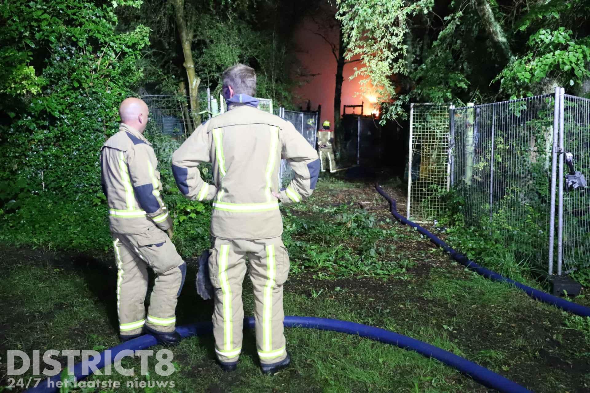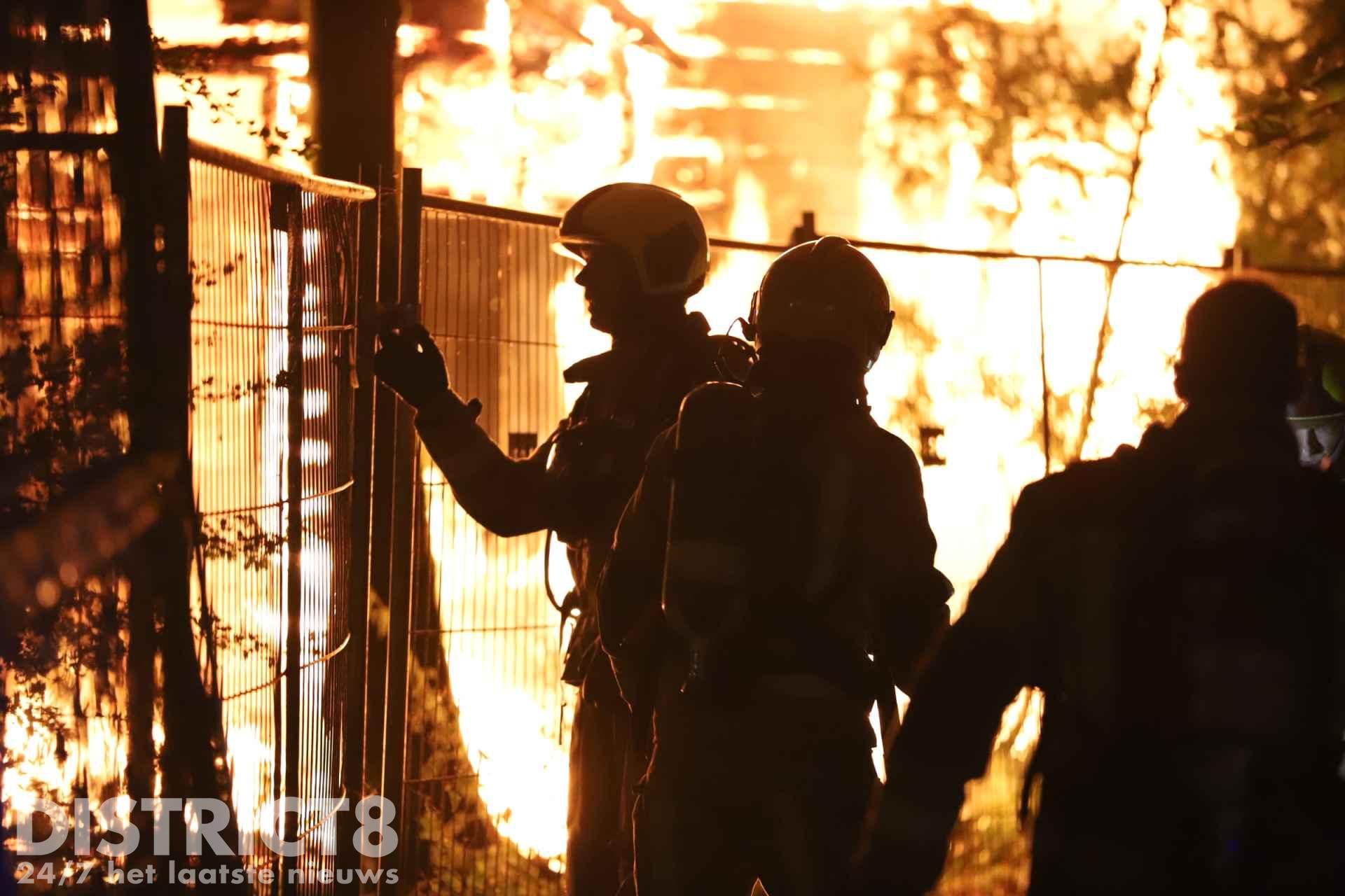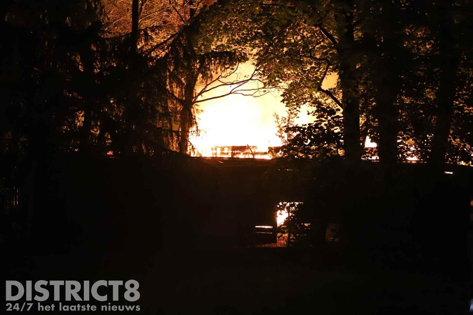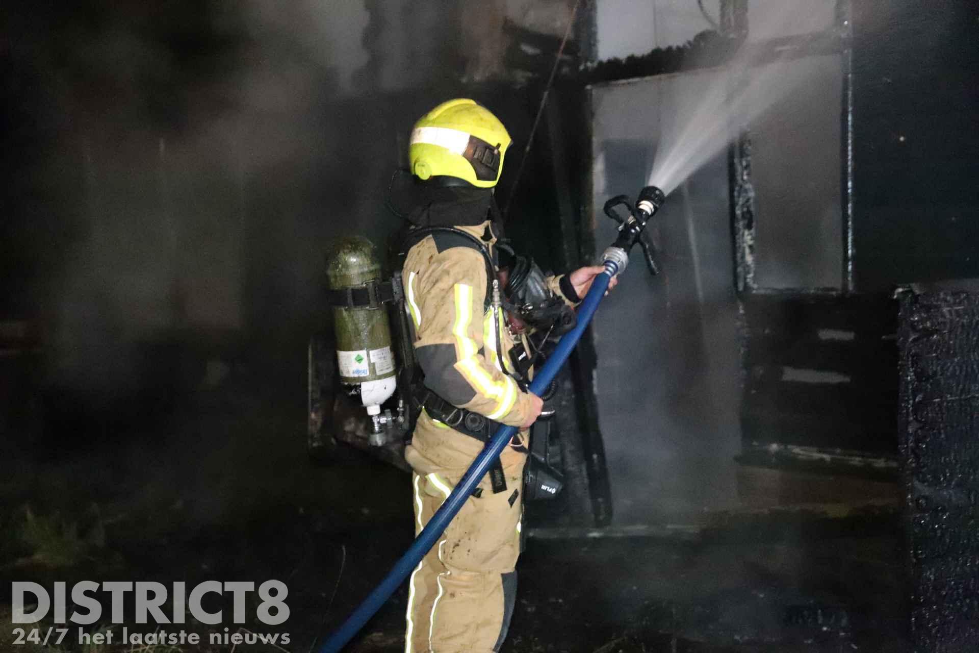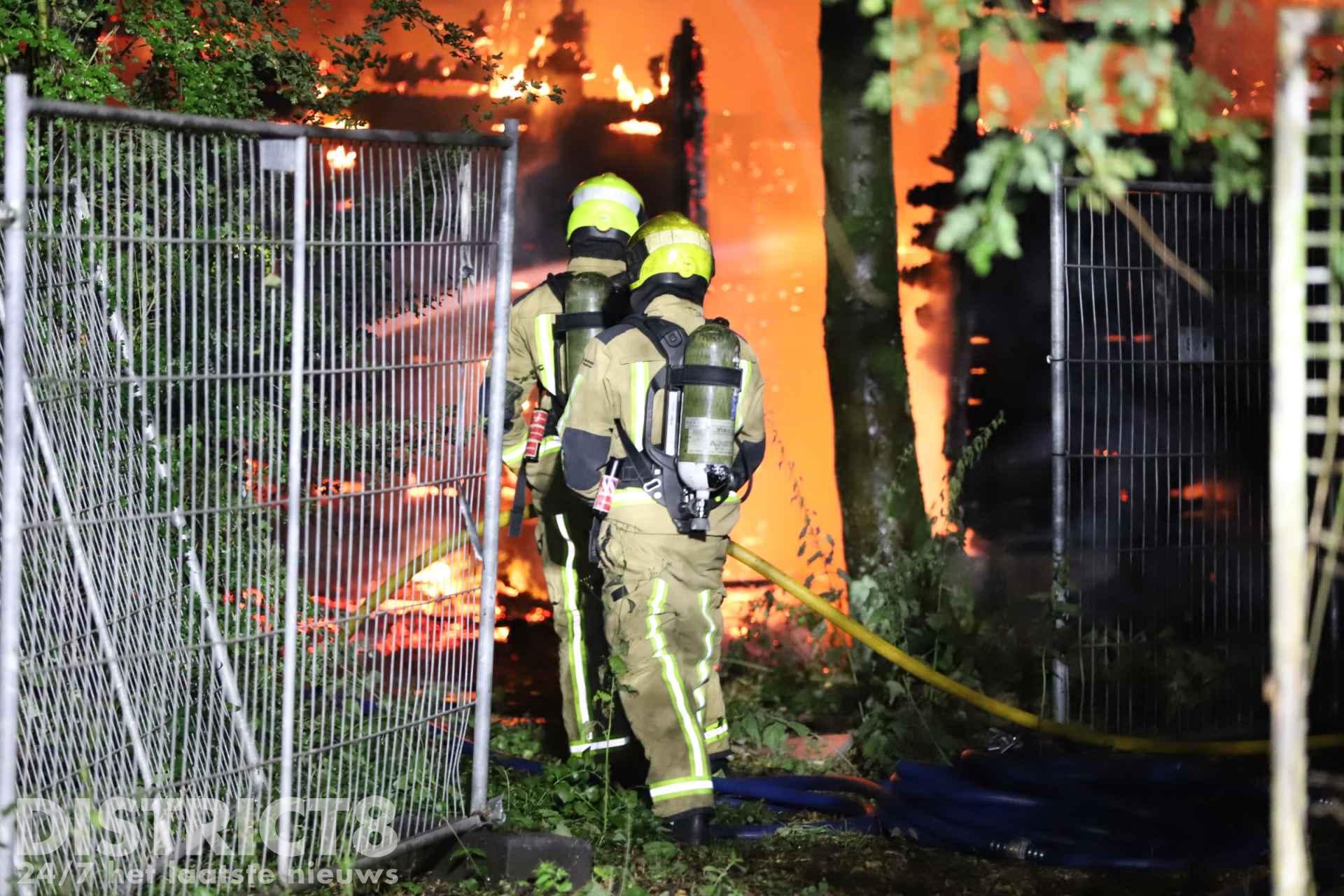 Ter plaatse bleek dat de gehele stal in brand stond. De brandweer schaalde vrijwel direct op naar ‘middelbrand’, mede om de waterwinning.