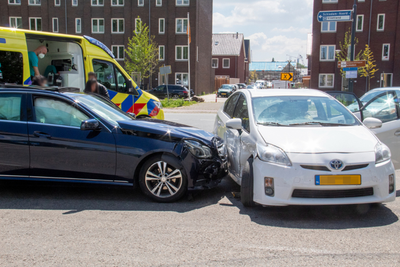 Flinke aanrijding tussen twee auto’s Hargalaan Schiedam