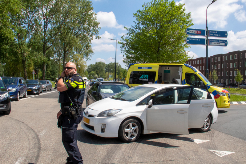 Schiedam – Op de Hargalaan, ter hoogte van de op- en afrit van de A20 in Schiedam, heeft zaterdagmiddag een aanrijding plaatsgevonden.