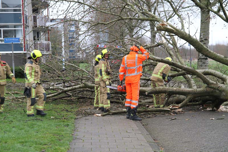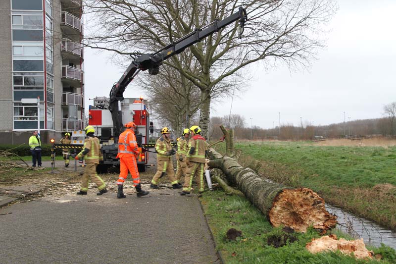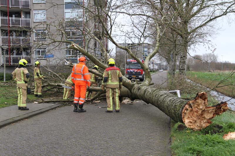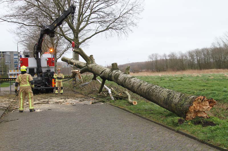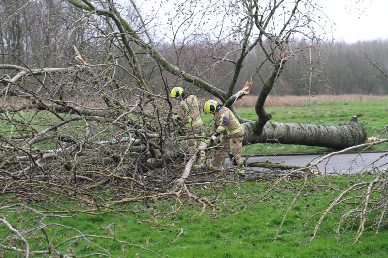 De brandweer moest er aan te pas komen om de boom van de weg te verwijderen.