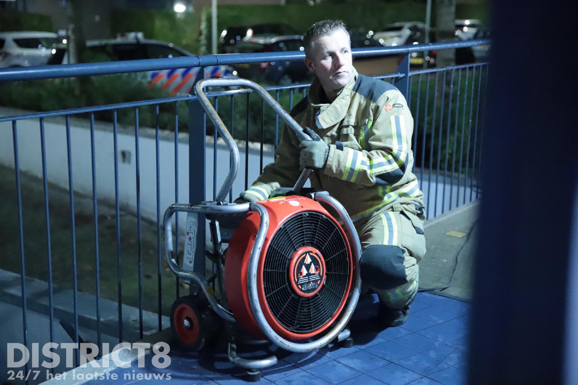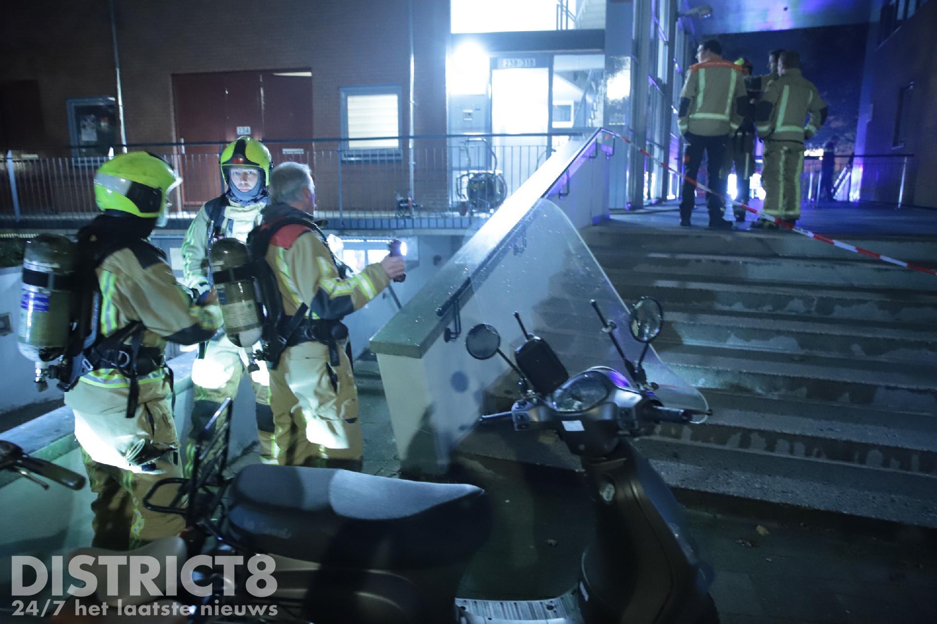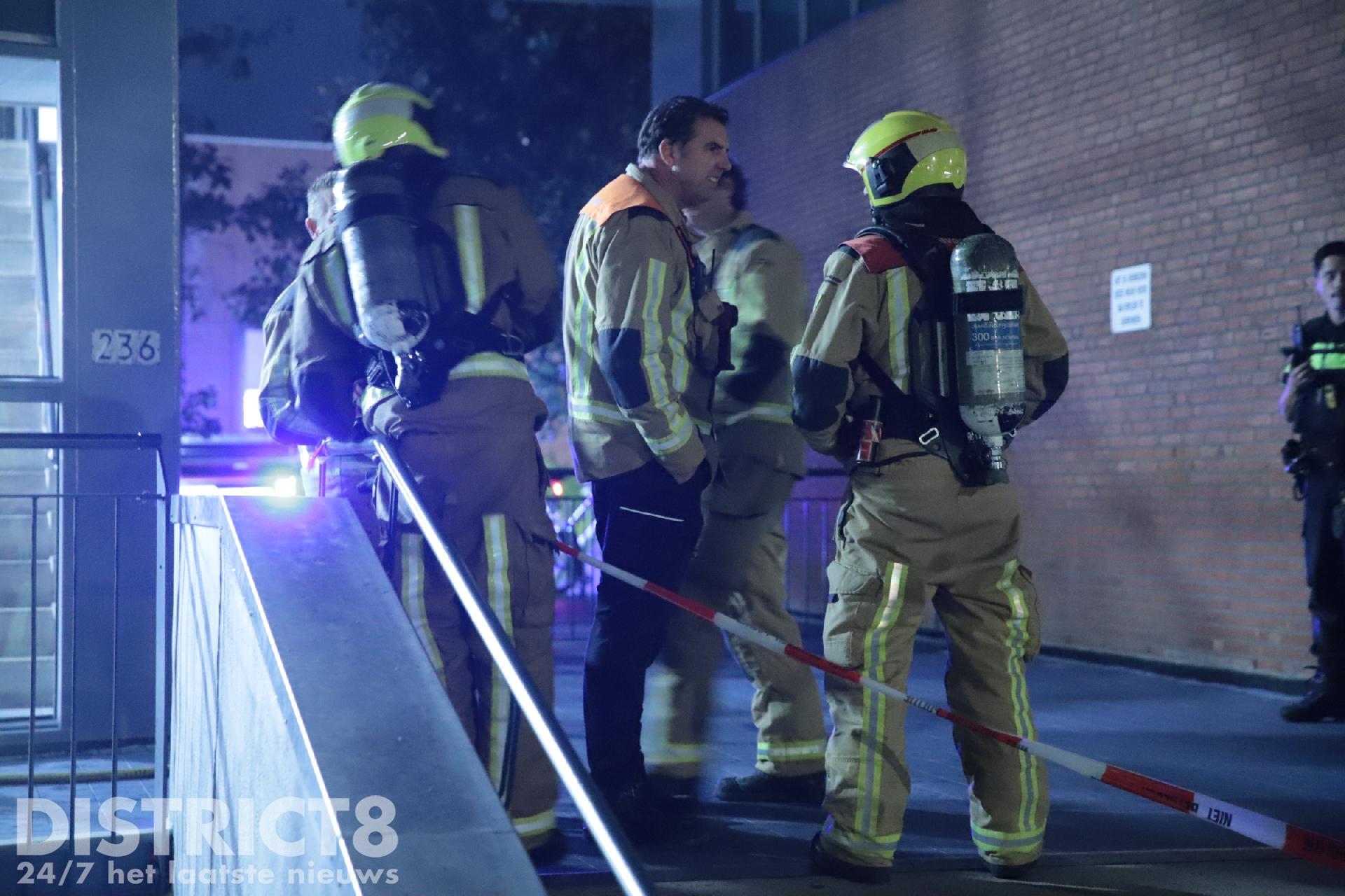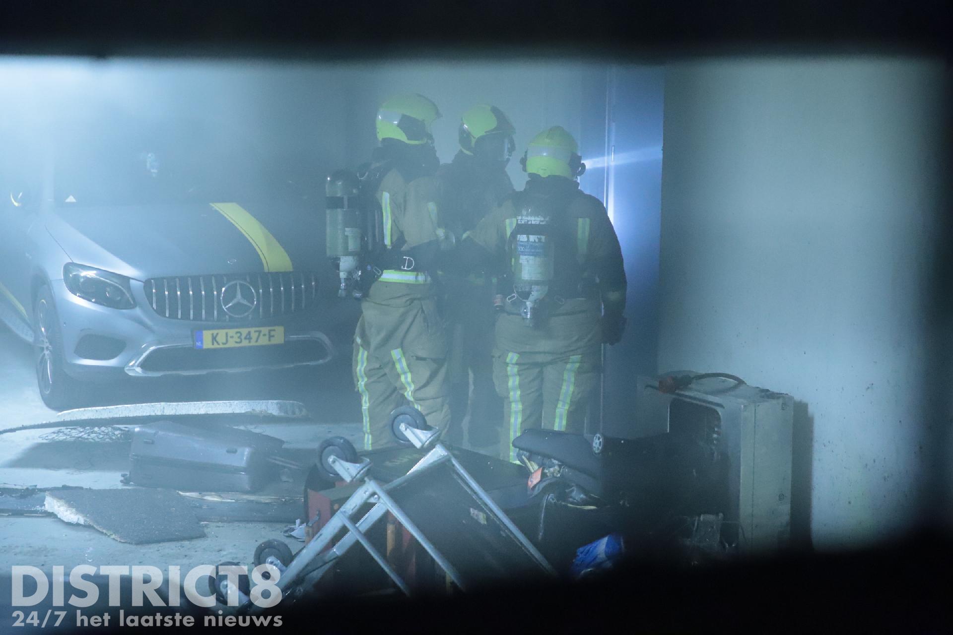De brandweer heeft opgeschaald naar ‘middelbrand’ en zijn de kelders aan het ventileren.