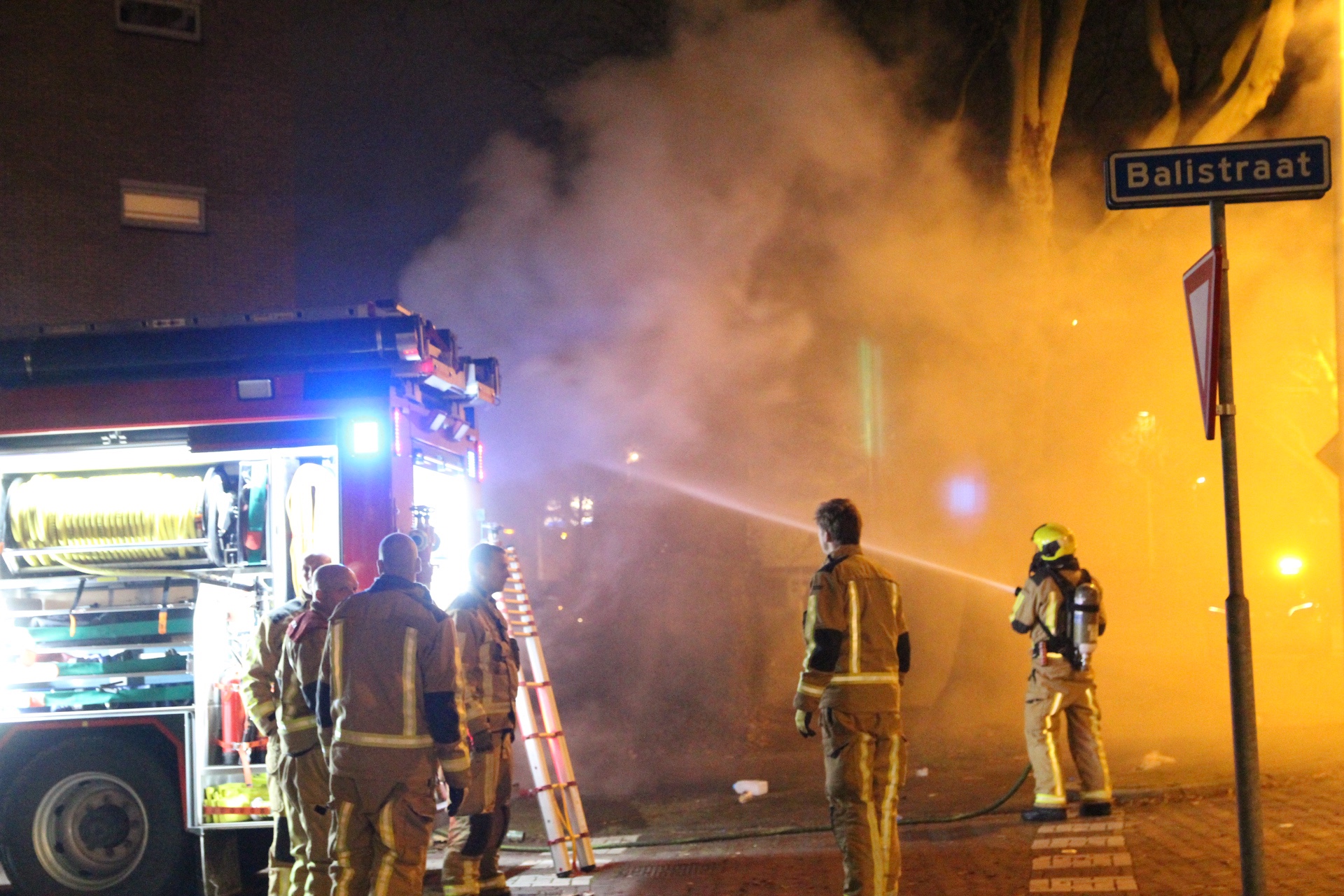 Bewoners hoorde een hoorden een harde knal. De brandweermannen die onderweg waren naar de kazerne zagen rookontwikkeling in de Balistraat en ging en een kijkje nemen.