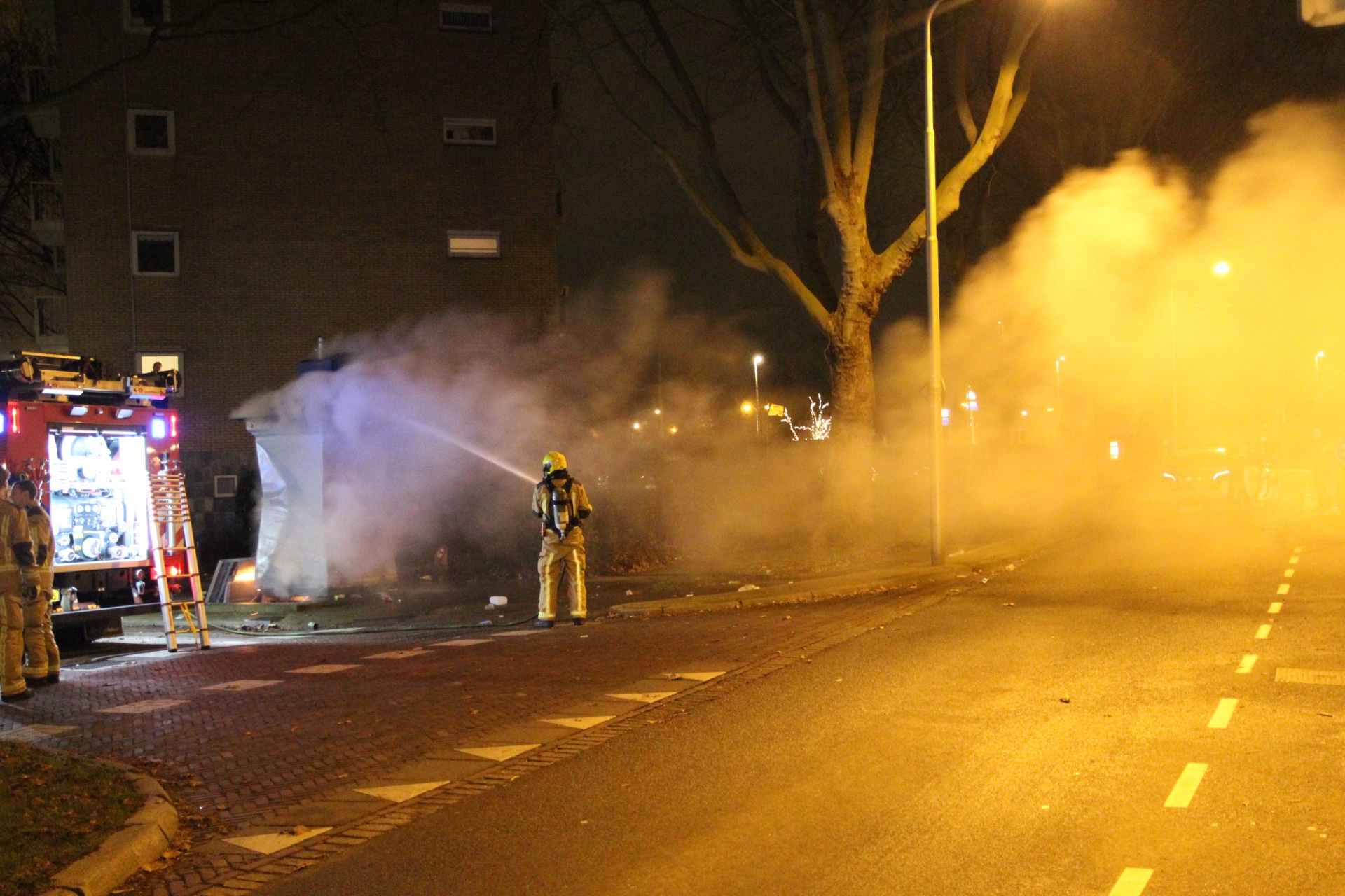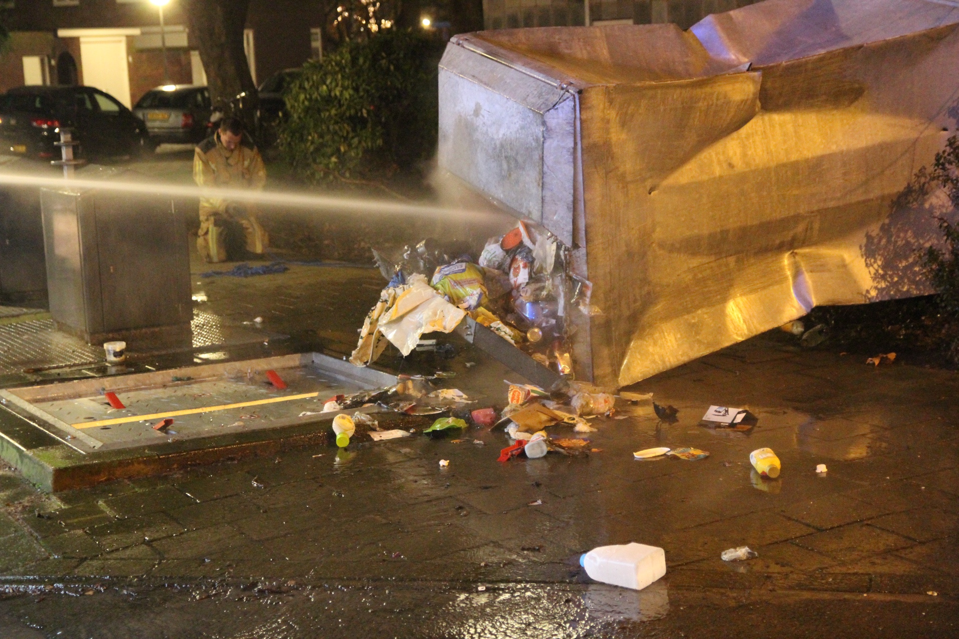 Ter plaatse troffen zij een ondergrondse container aan die door een flink stuk vuurwerk uit de grond was geschoten.