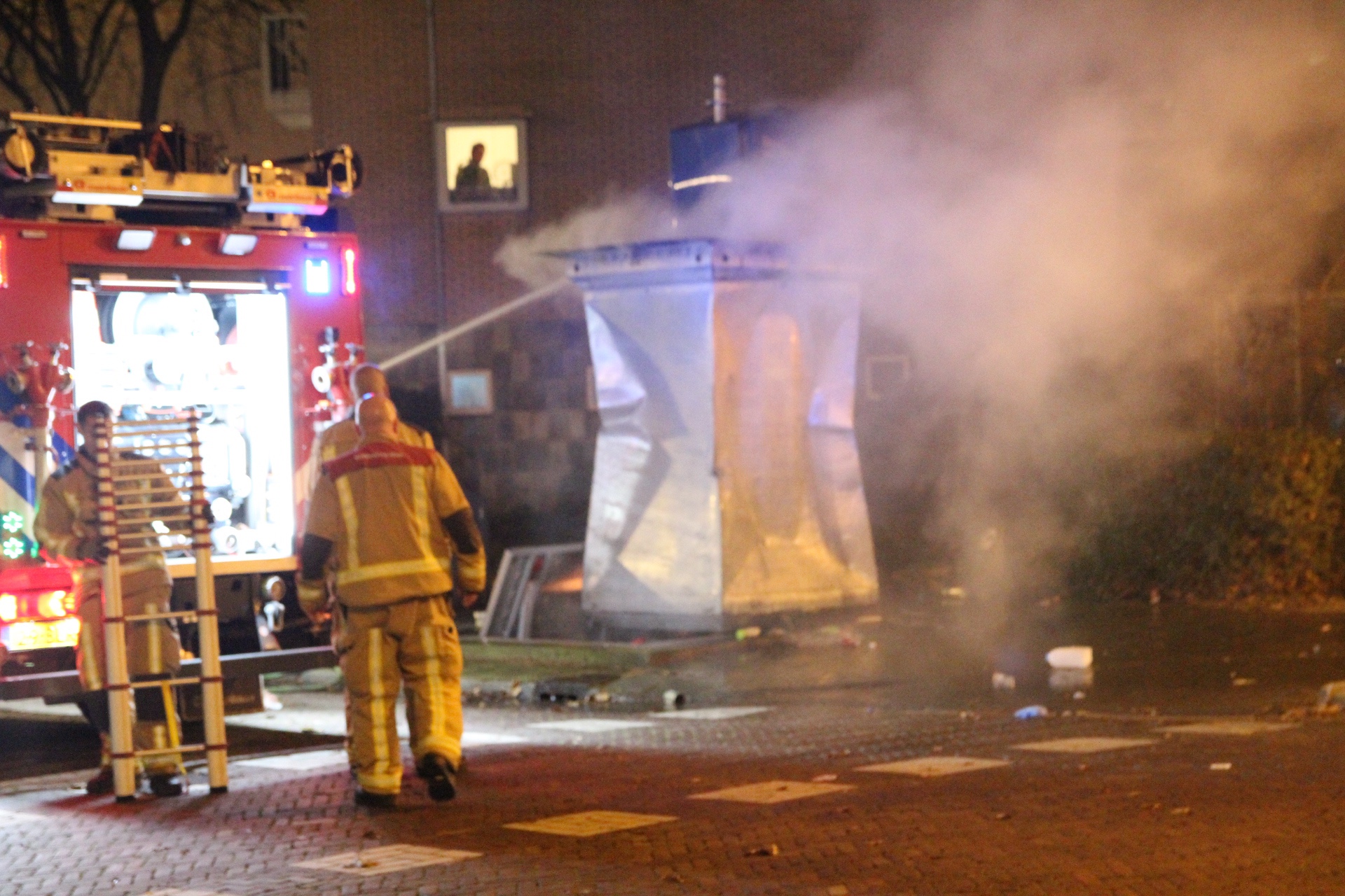 De brandweer kon het vuur snel blussen. De container zal later worden vervangen.