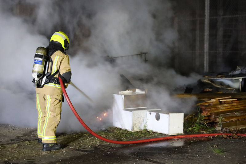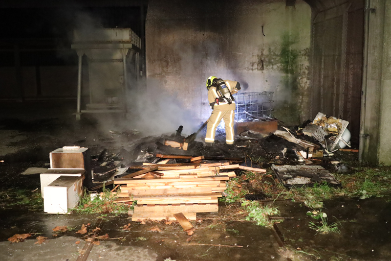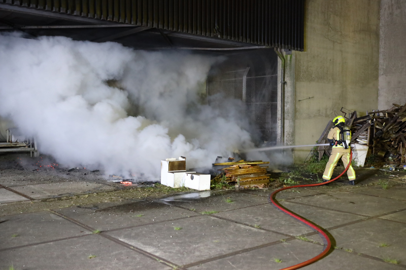 Rond 01:10 kreeg de brandweer een melding van de brand, ter plaatse bleek er onder een afdak een grote stapel hout en sloopmateriaal in brand te staan. Omdat de waterwinning schaars was is een tweede tankautospuit gevraagd.