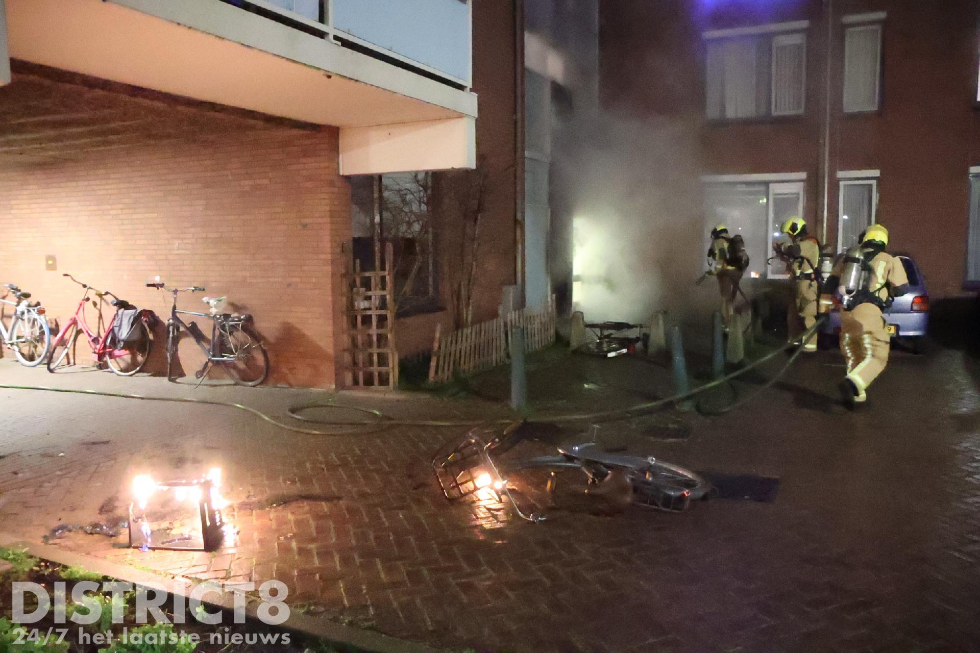 Even na half twee ontdekte een bewoner een felle brand tussen twee fietsen. De fietsen stonden nabij de ingang van een portiek. De bewoner belde direct 112. Terwijl de brandweer al onderweg was naar het incident meldde de bewoner dat de brand zo hevig was dat deze was overgeslagen naar de twee verdiepingen van het portiek. Hierop werden direct extra brandweervoertuigen opgeroepen.