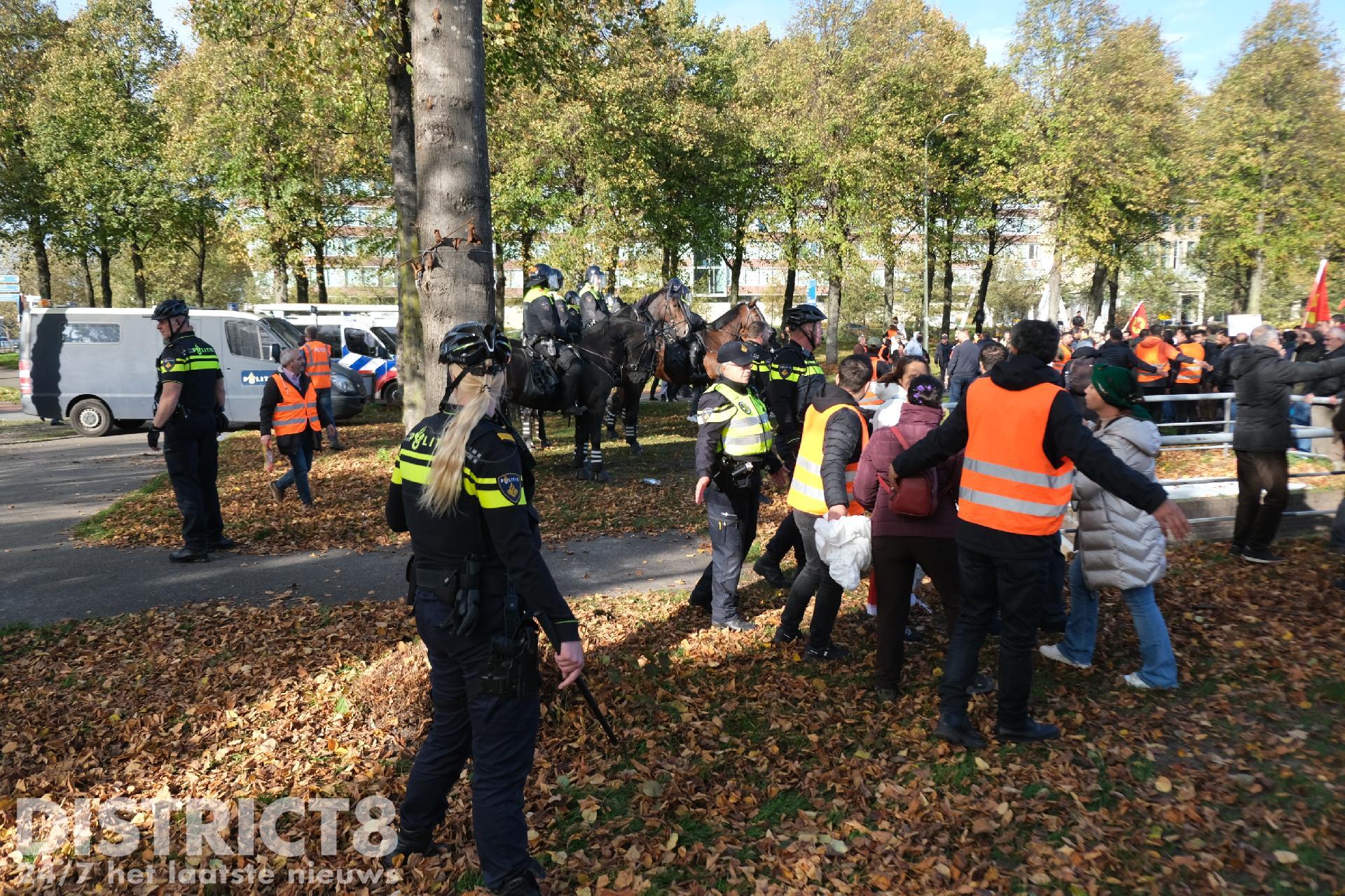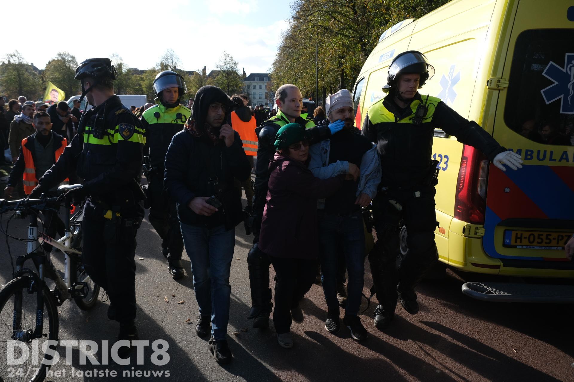 Inmiddels staat de Mobiele Eenheid op linie omdat demonstranten naar de ambassade wilde lopen. Hierbij zijn ook enkele agenten op paarden aangevallen en werden er stokken gegooid naar agenten. Er zijn demonstranten gewond geraakt, voor hen zijn meerdere ambulances ter plekke gekomen.