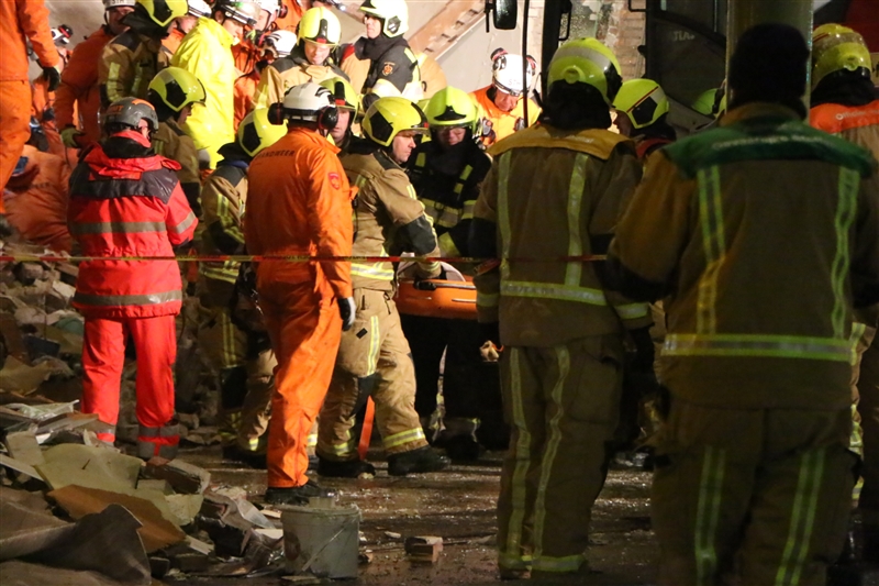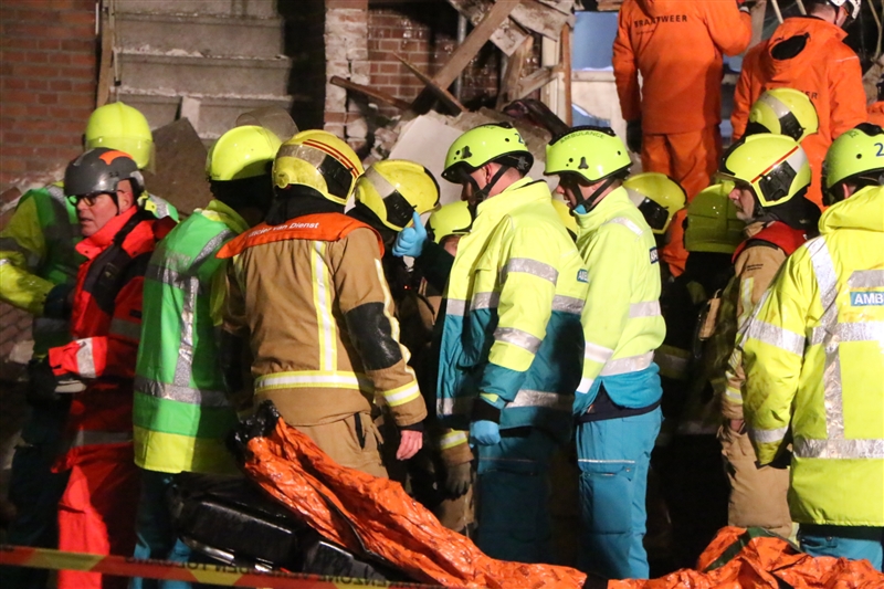 Update instorting Jan vd Heijdenstraat: Na langdurige reddingsoperatie is zojuist ook 4e persoon levend onder puin vandaan gehaald! Persoon is overgedragen aan ambulance.