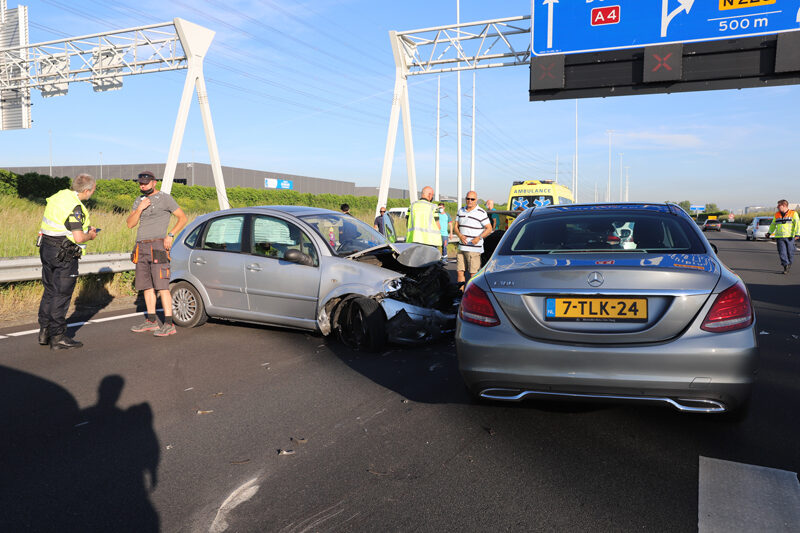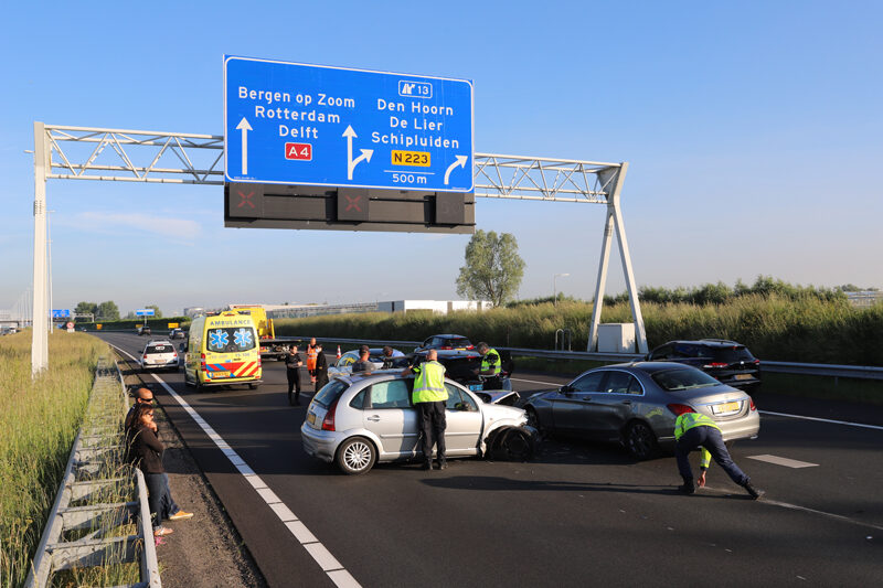 Den Hoorn – Op de A4 bij Den Hoorn heeft donderdagavond 10 juni een aanrijding plaatsgevonden waarbij vier personenauto’s betrokken waren.