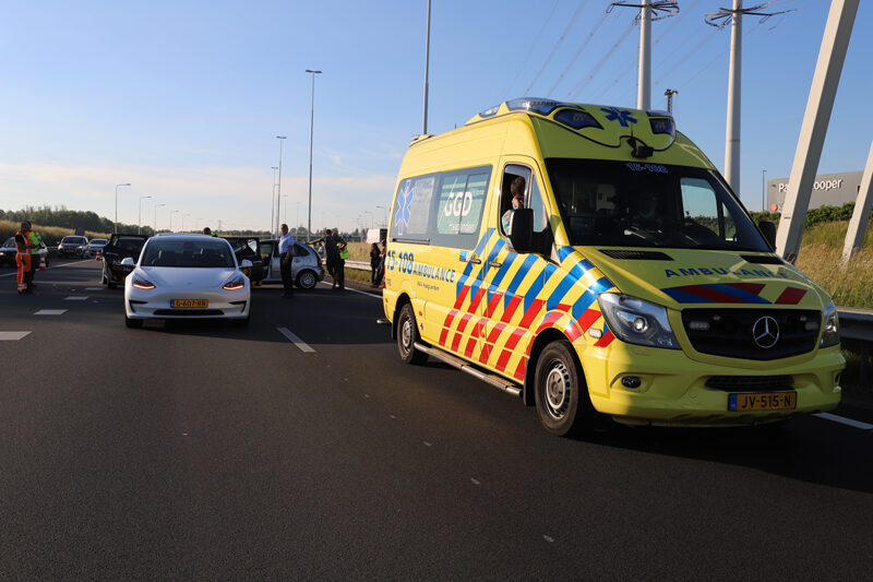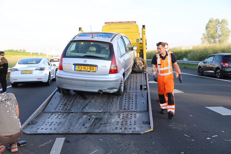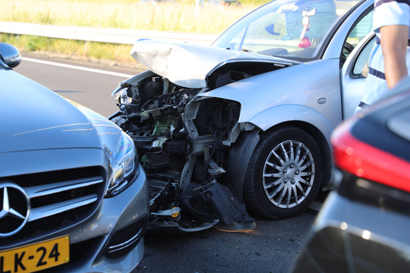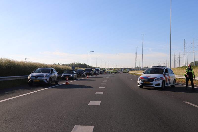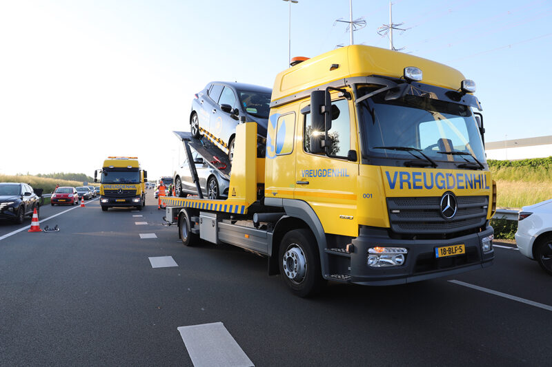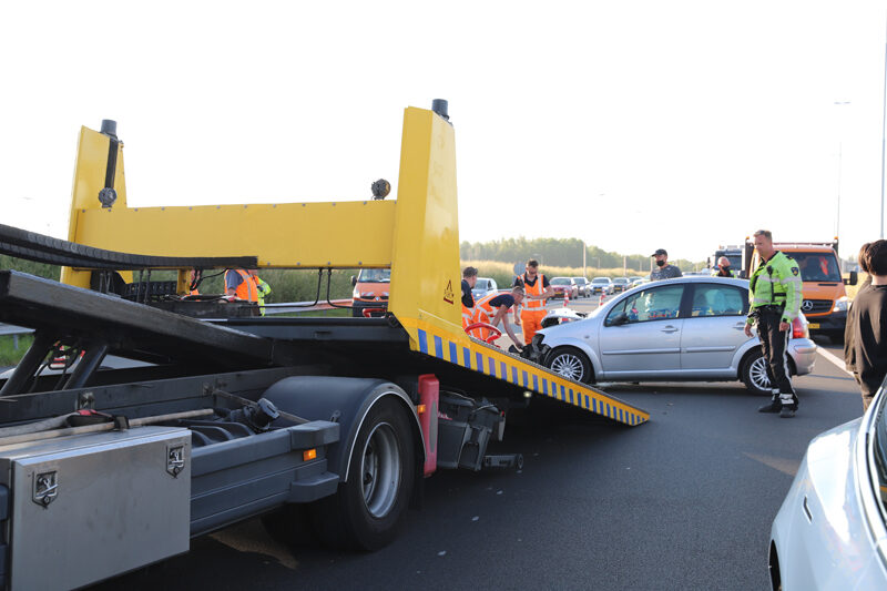 Het verkeer werd via de vluchtstrook geleid, omdat beide rijbanen waren afgesloten door de aanrijding. Bergingsbedrijf Vreugdenhil heeft de voertuigen meegenomen.