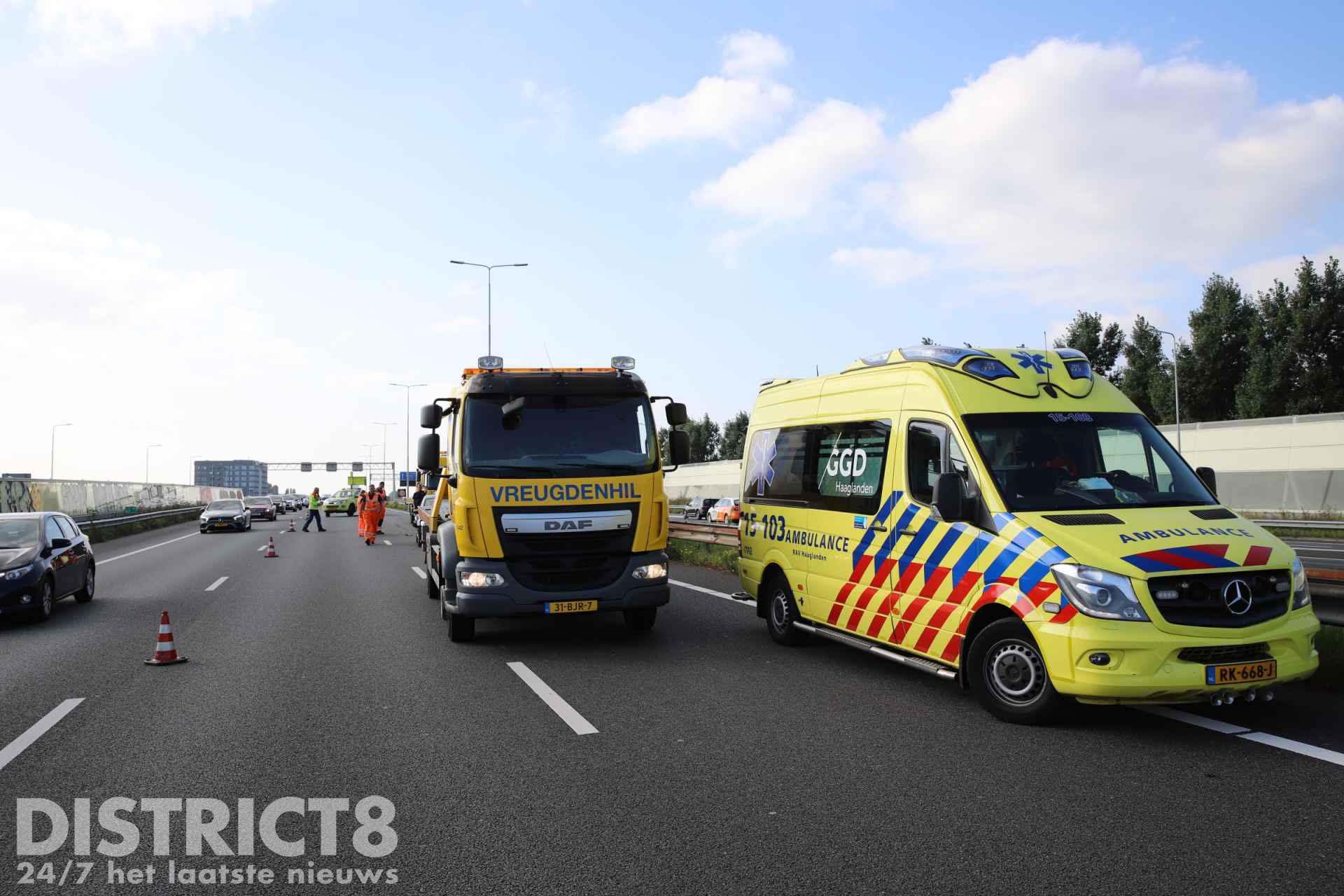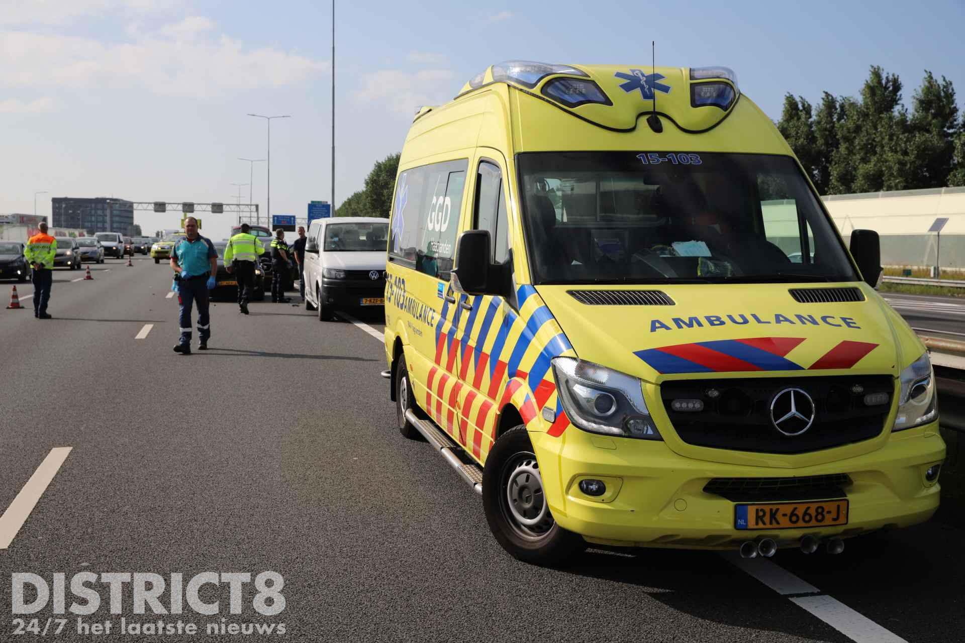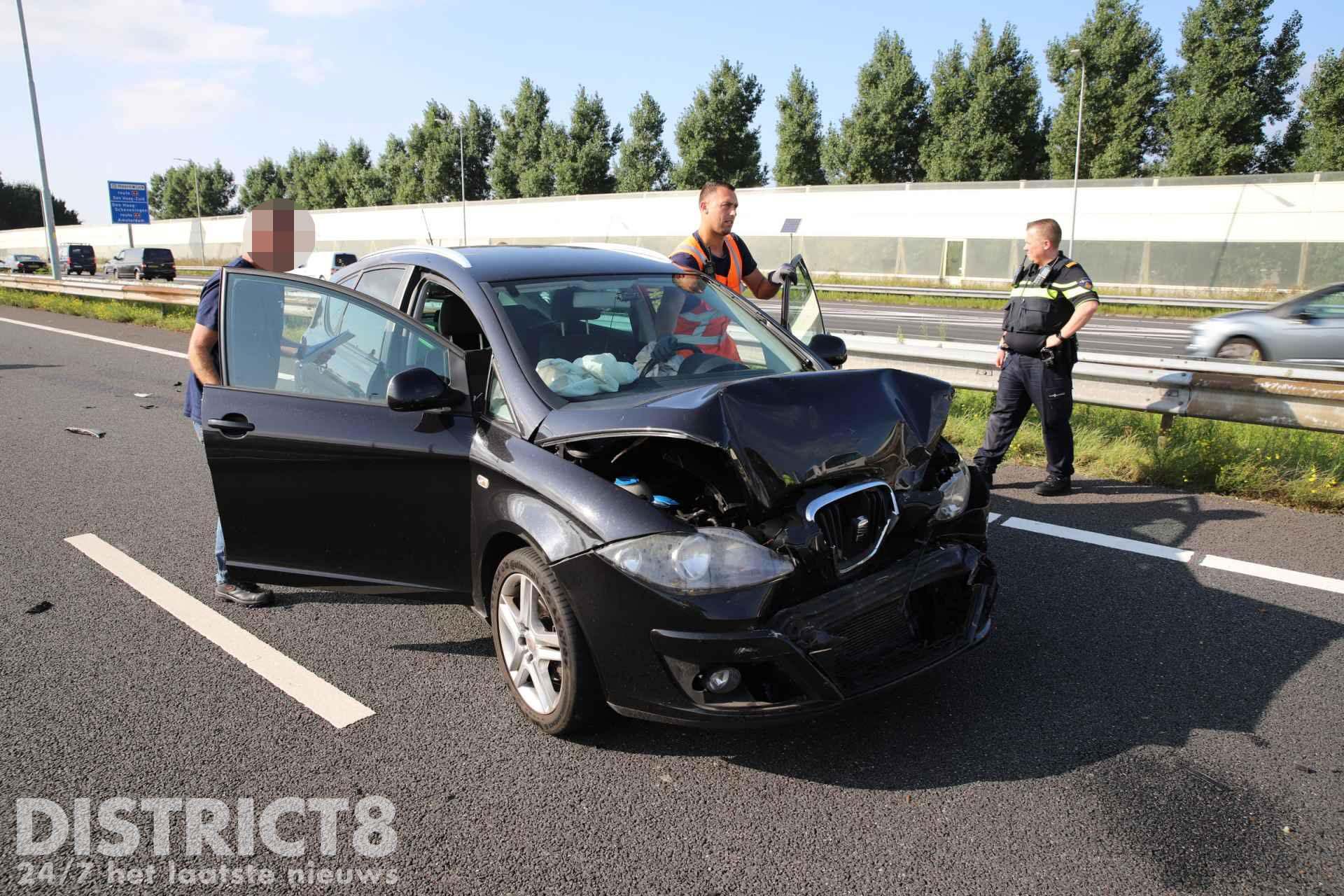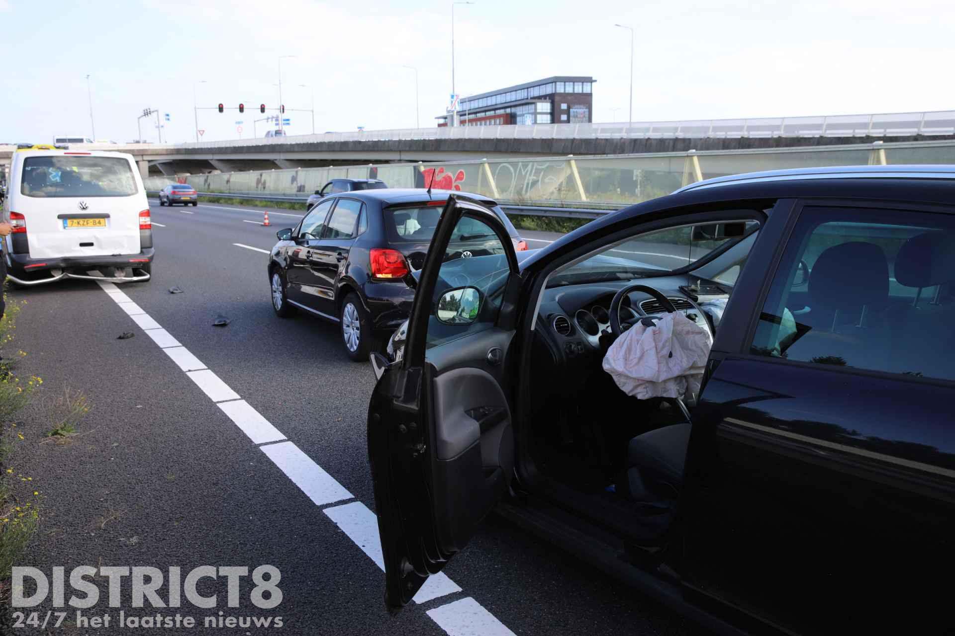 Rond half vijf ging het, ter hoogte van afslag Nootdorp, mis en klapte drie voertuigen op elkaar. Bij twee voertuigen zijn de airbags uitgegaan.